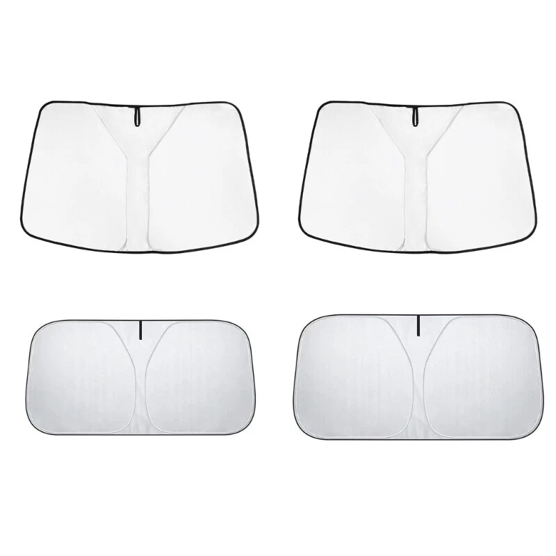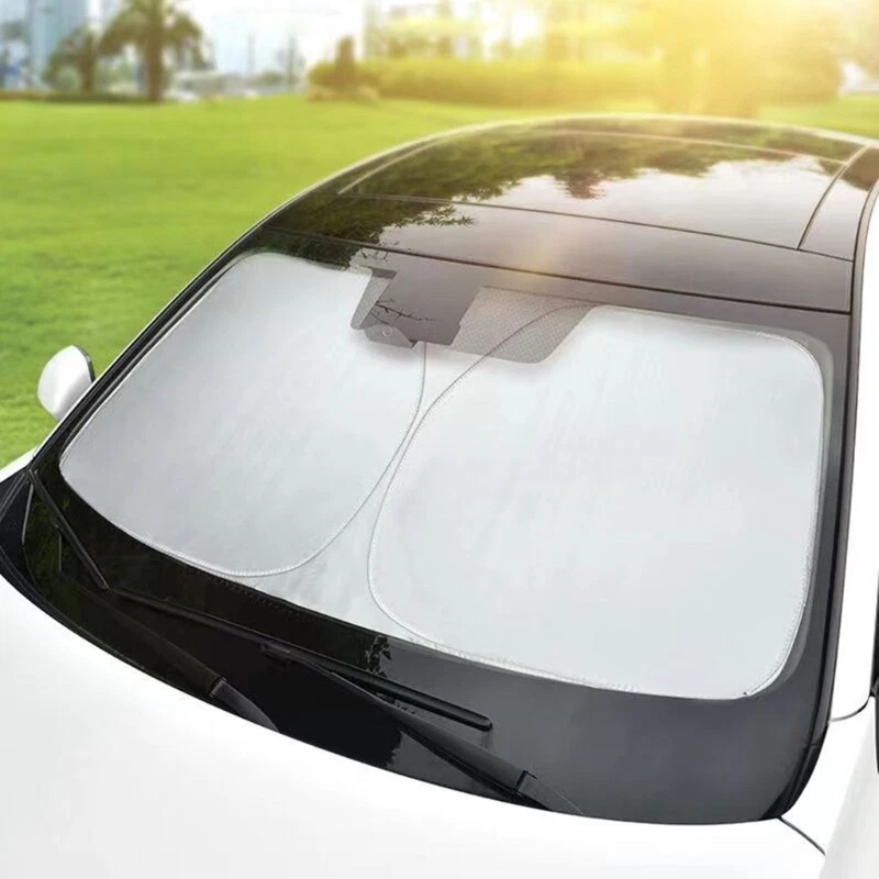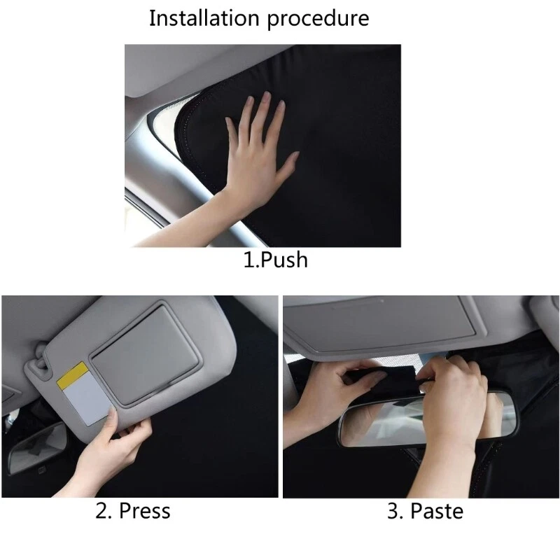 Features: Fits perfectly to most sedans and Size SUVs. Find your vehicle in the size chart. High-quality reflective polyester- material blocks heat & sun. Keeps your vehicle cool and protects against damage caused by hot sunlight. Quick and easy to install, and quick and easy to fold and store away. Reflective aluminum foil combine with bubble material make the cooling effect is more significant. Protect instrument desk, steering wheel and chairs, Specifications: Material:Polyester Type For Car,For SUV Size:Approx.145x93cm/57''x36.6'' ,140x70cm/55.1''x27.5'' (For Car),145x80cm/57''x31.5'' (For SUV) Package Includes: 1x Windshield Sunshade note: Please allow 1mm errors due to manual measurement. Due to the difference between different monitors, the picture may not reflect the actual color of the item.