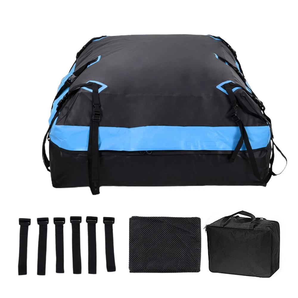 High Capacity Design: Experience the ease of hauling your must-haves with our Car Rooftop Cargo Carrier's notable 28 cubic feet capacity, which fits seamlessly onto SUVs with or without roof racks, raised side rails, cross bars or none at all. Waterproof Design: Engineered with a waterproof design, our Car Rooftop Cargo Carrier ensures your belongings remain dry and secure, providing protection from scratches while keeping cargo stable. Versatile Storage : Seamlessly carry all your camping gear and luggage with our spacious rooftop cargo carrier, ensuring a hassle-free travel experience. Easy to Use: Carefully crafted to enhance your journey, our Car Rooftop Cargo Carrier is designed to optimize passenger comfort, ensuring a relaxed and enjoyable road trip. Extensive Usage: Our Car Rooftop Cargo Carrier is the perfect multi-usage upgrade for your thrilling road trips, camping, and outdoor travels. With its multi-functional design, take your adventures to the next level. Keep your belongings safe during road trips by using Cargo Bag for Top of Car. Its waterproof design ensures equipment stays dry, while optimizing passenger comfort. Perfect for various freight trucks, the bag is a must-have for your next adventure. Specification: Name: Car Rooftop Cargo Carrier Color: black and blue Waterproof level: waterproof Usage: Outdoor product Applicable models: General Packing List: 28-inch rooftop luggage bag*1 Anti-slip mat*1 Storage bag*1 Door hooks*6