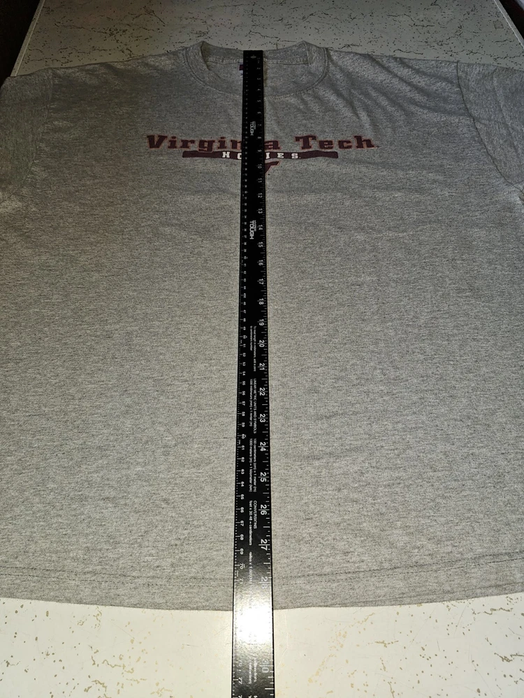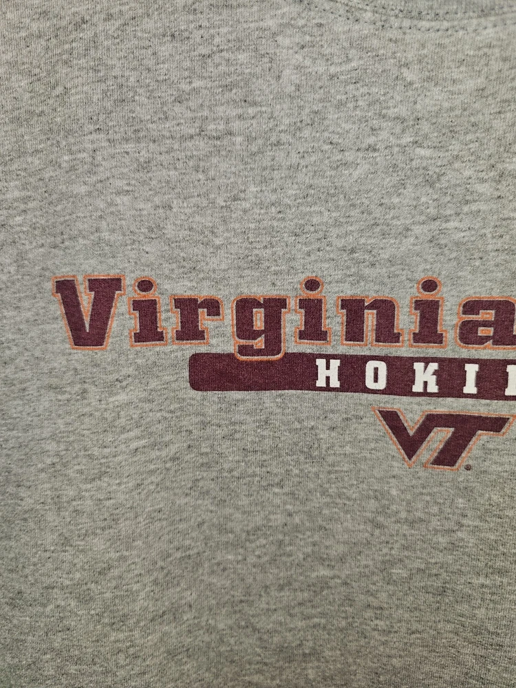 Show your support for the University of Virginia Tech with this older style XL men's gray graphic logo t-shirt. Perfect for any fan of the NCAA team, this t-shirt features the team's logo prominently displayed on the front. The shirt is made from high-quality materials and is designed to be comfortable and durable. Whether you're wearing it to a game or just around town, this t-shirt is sure to make a statement. It's available in size XL and comes in a stylish gray color. Order yours today and show your pride for the Virginia Tech Hokies!
