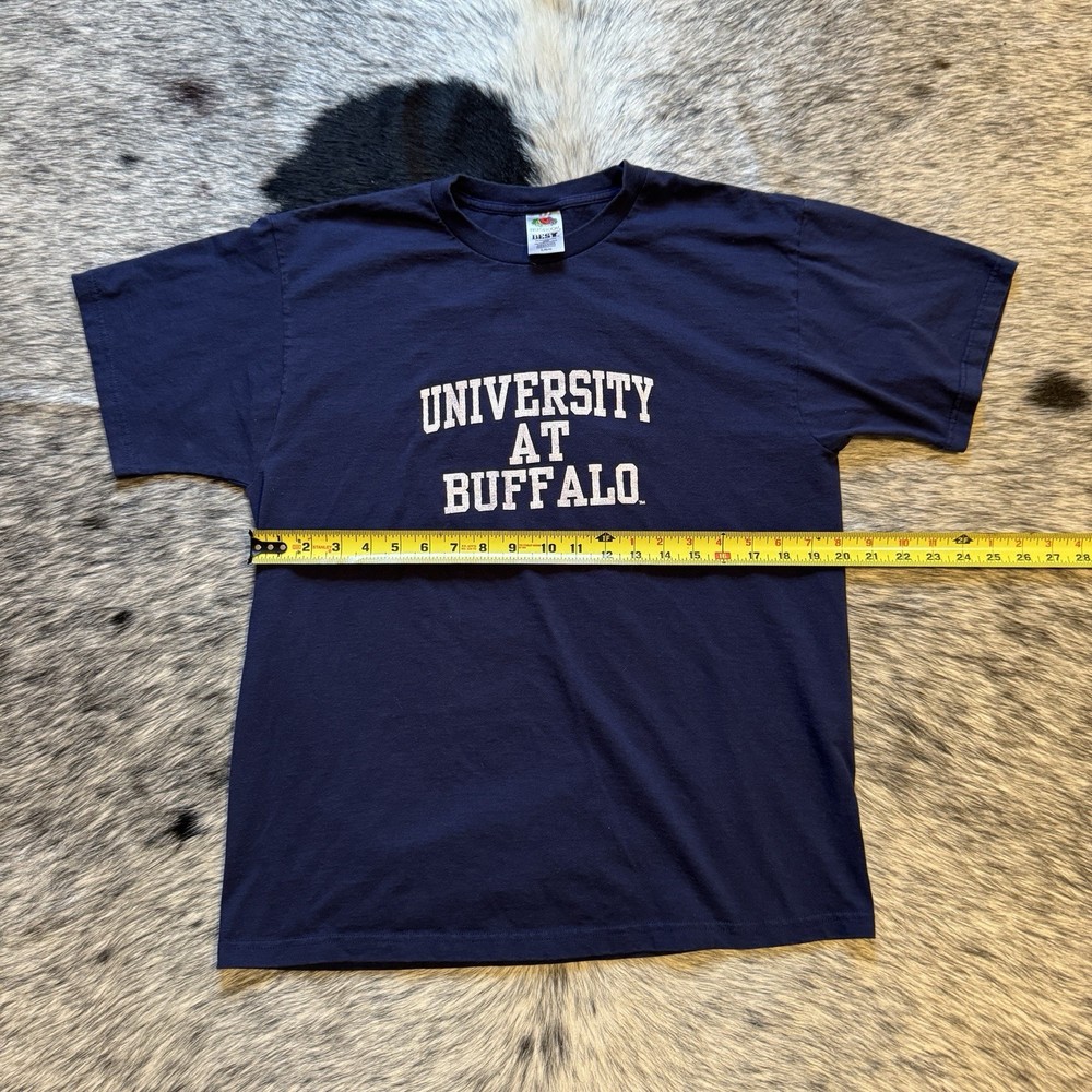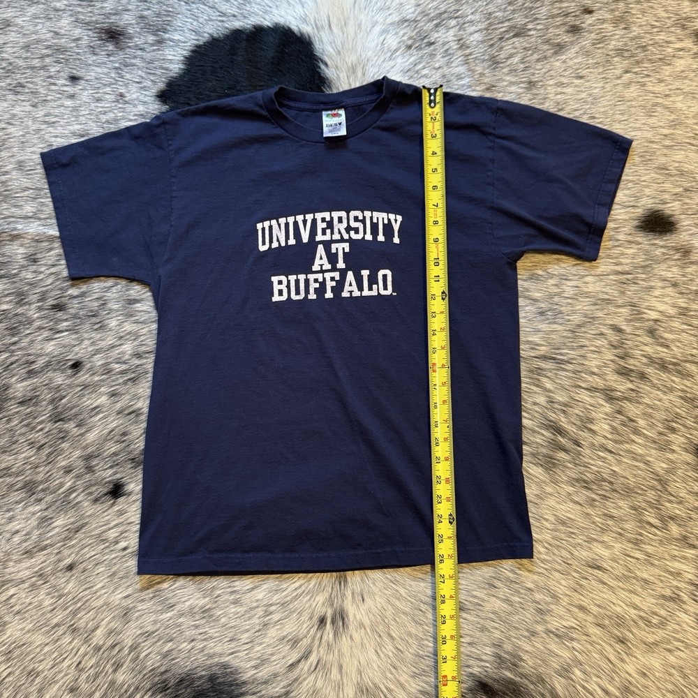 π Classic University at Buffalo tee in a clean navy blue colorway with bold white collegiate-style front spellout. Tagged Fruit of the Loom Best size Large, this is an easy everyday campus, alumni, or college sportswear piece with that simple vintage-style university look buyers love. Great for UB students, alumni, Buffalo fans, or anyone who likes clean collegiate graphic tees that are easy to wear year-round. Looks great styled casually with jeans, shorts, sweats, or layered under a flannel or jacket. Nice straightforward school shirt with strong wearable appeal and clean presentation. selling as-is, check pictures for condition