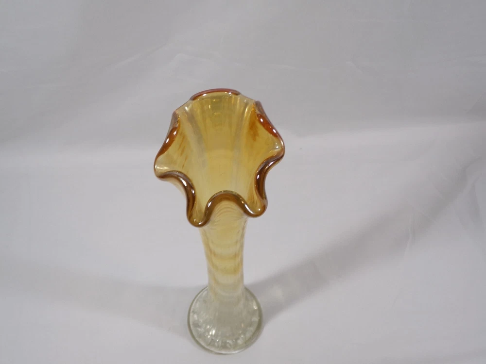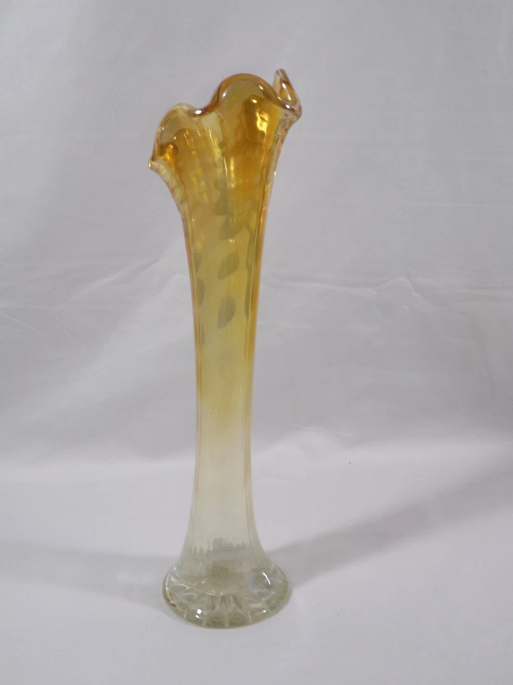 Unmarked Marigold to clear 9 3/4" Ribbed Pulled Loop Swung Vase