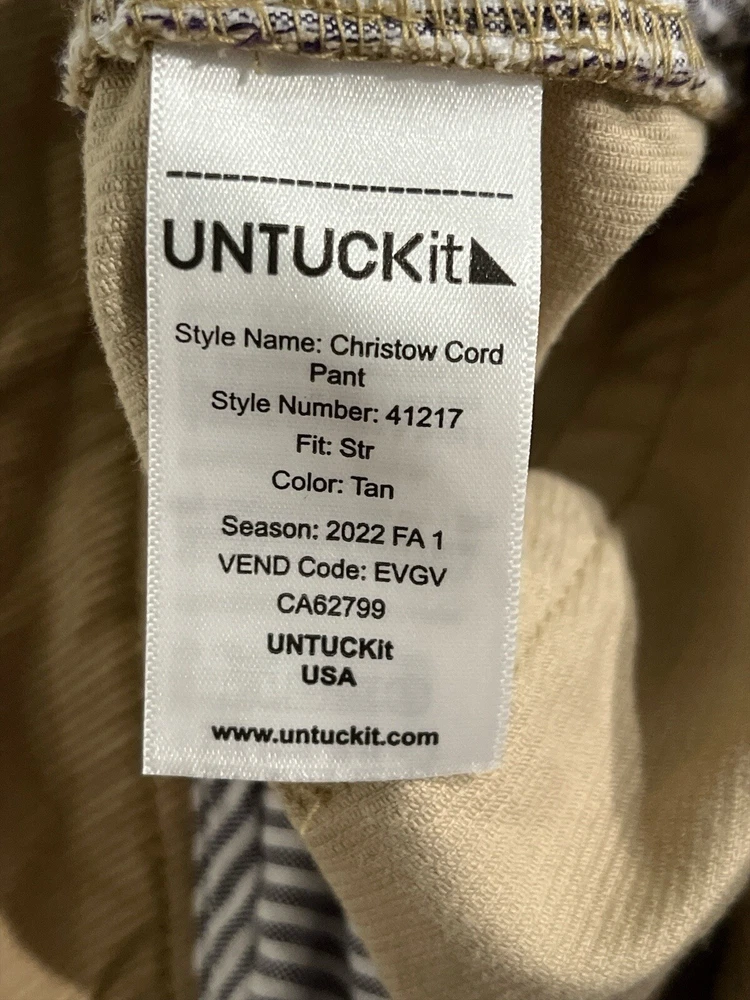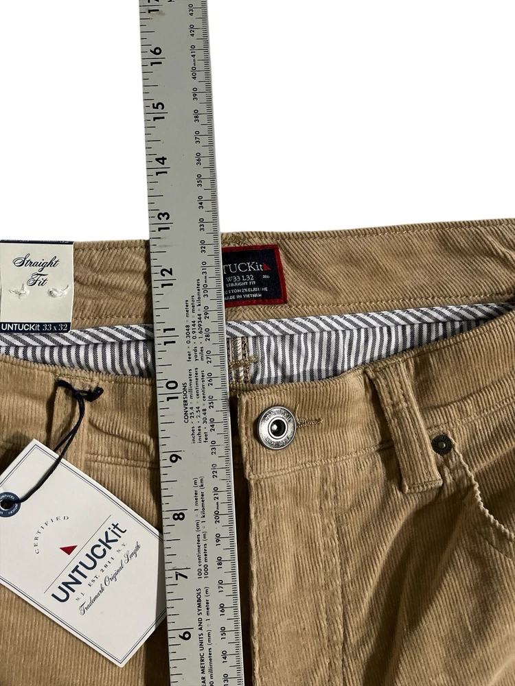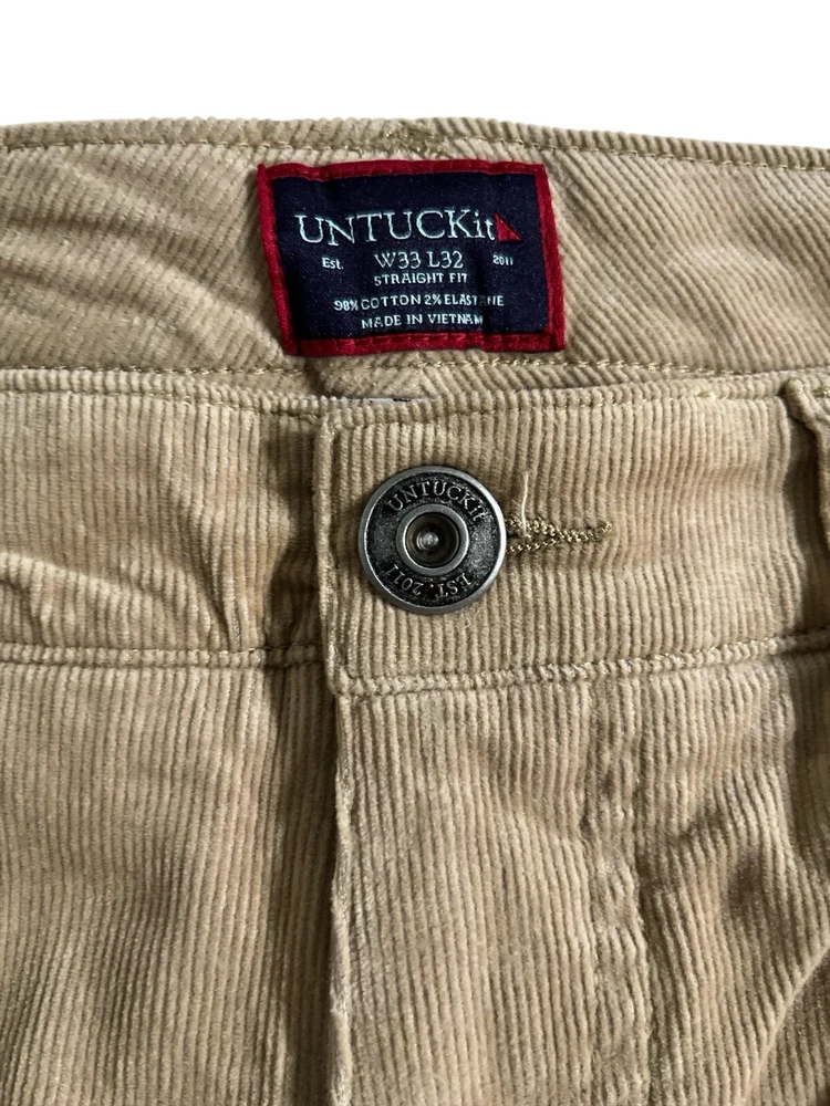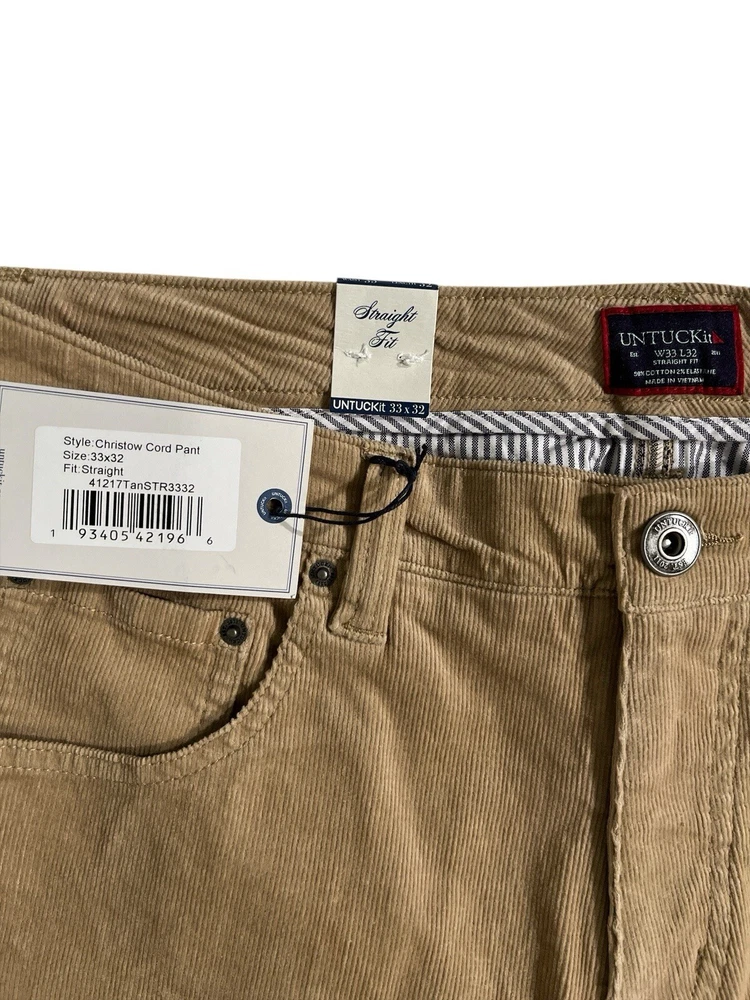 Untuckit Christow Cord Pants Men 33x32 Tan Stretch Cotton Straight Fit Chino. New with tags. We pre-wrap and inventory right after pictures, therefore no more measurements can be given. LBG13