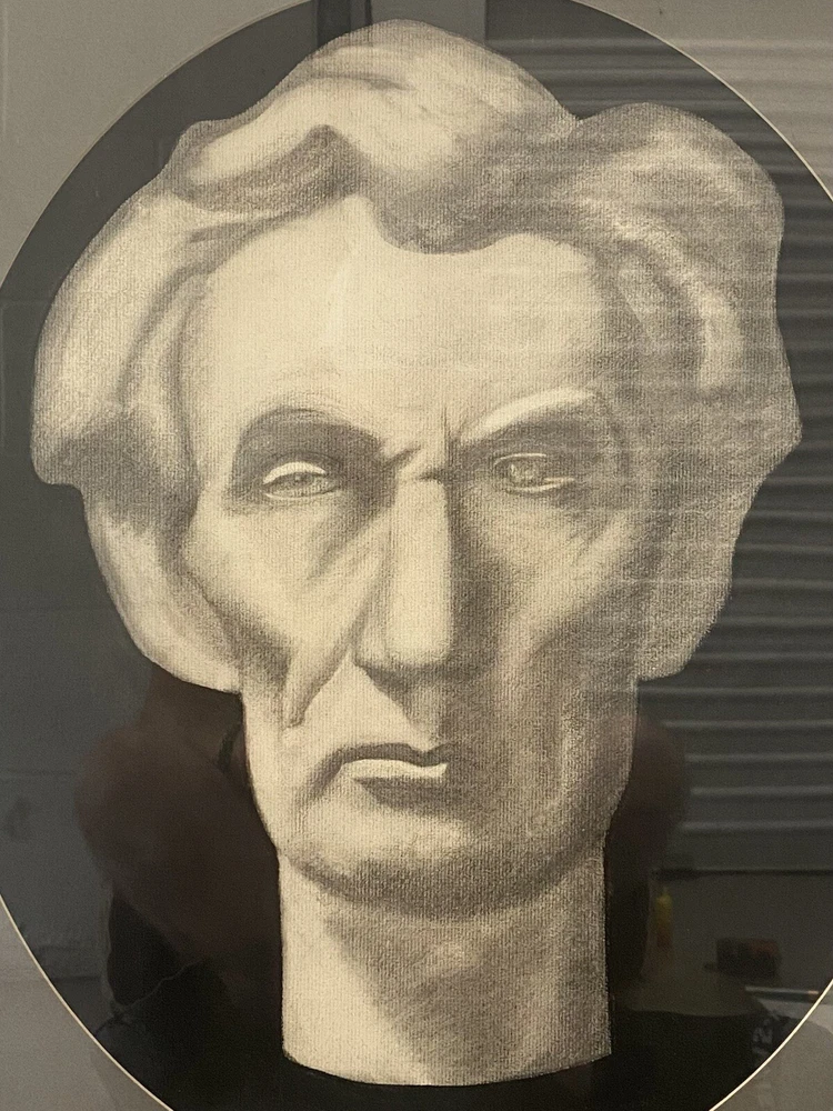 This is an expressive and Unusual Antique American Civil War Abraham LINCOLN Portrait Drawing Painting, likely dating to the 1940's - 1950's. This piece depicts a very stoic bust-like portrait of a young Abraham Lincoln (1809 - 1865) in stark black, gray, and white, rendered in charcoal on thick woven paper. This portrait is portrayed against a stark black background, with an ovoid dark gray matting and silvered vintage wood frame. The overall appearance of these elements creates a very captivating image, which may have been a maquette for a marble bust of this legendary American President. This piece appears to be unsigned, but perhaps you recognize the artist or their work? An old framer's label on the verso reads: "Lincoln Park...Chicago, Illinois." Approximately 20 1/8 x 24 1/4 inches (including frame.) Actual visible artwork is approximately 15 x 18 inches. Very good condition for age, with some moderate scuffing, chipping and edge wear to the vintage frame (please see photos.) Acquired in Los Angeles County, California. If you like what you see, I encourage you to make an Offer. Please check out my other listings for more wonderful and unique artworks! About this Artwork: Abraham Lincoln THE 16TH PRESIDENT OF THE UNITED STATES The biography for President Lincoln and past presidents is courtesy of the White House Historical Association. Abraham Lincoln became the United States’ 16th President in 1861, issuing the Emancipation Proclamation that declared forever free those slaves within the Confederacy in 1863. Lincoln warned the South in his Inaugural Address: “In your hands, my dissatisfied fellow countrymen, and not in mine, is the momentous issue of civil war. The government will not assail you…. You have no oath registered in Heaven to destroy the government, while I shall have the most solemn one to preserve, protect and defend it.” Lincoln thought secession illegal, and was willing to use force to defend Federal law and the Union. When Confederate batteries fired on Fort Sumter and forced its surrender, he called on the states for 75,000 volunteers. Four more slave states joined the Confederacy but four remained within the Union. The Civil War had begun. The son of a Kentucky frontiersman, Lincoln had to struggle for a living and for learning. Five months before receiving his party’s nomination for President, he sketched his life: “I was born Feb. 12, 1809, in Hardin County, Kentucky. My parents were both born in Virginia, of undistinguished families–second families, perhaps I should say. My mother, who died in my tenth year, was of a family of the name of Hanks…. My father … removed from Kentucky to … Indiana, in my eighth year…. It was a wild region, with many bears and other wild animals still in the woods. There I grew up…. Of course when I came of age I did not know much. Still somehow, I could read, write, and cipher … but that was all.” Lincoln made extraordinary efforts to attain knowledge while working on a farm, splitting rails for fences, and keeping store at New Salem, Illinois. He was a captain in the Black Hawk War, spent eight years in the Illinois legislature, and rode the circuit of courts for many years. His law partner said of him, “His ambition was a little engine that knew no rest.” He married Mary Todd, and they had four boys, only one of whom lived to maturity. In 1858 Lincoln ran against Stephen A. Douglas for Senator. He lost the election, but in debating with Douglas he gained a national reputation that won him the Republican nomination for President in 1860. As President, he built the Republican Party into a strong national organization. Further, he rallied most of the northern Democrats to the Union cause. On January 1, 1863, he issued the Emancipation Proclamation that declared forever free those slaves within the Confederacy. Lincoln never let the world forget that the Civil War involved an even larger issue. This he stated most movingly in dedicating the military cemetery at Gettysburg: “that we here highly resolve that these dead shall not have died in vain–that this nation, under God, shall have a new birth of freedom–and that government of the people, by the people, for the people, shall not perish from the earth.” Lincoln won re-election in 1864, as Union military triumphs heralded an end to the war. In his planning for peace, the President was flexible and generous, encouraging Southerners to lay down their arms and join speedily in reunion. The spirit that guided him was clearly that of his Second Inaugural Address, now inscribed on one wall of the Lincoln Memorial in Washington, D. C.: “With malice toward none; with charity for all; with firmness in the right, as God gives us to see the right, let us strive on to finish the work we are in; to bind up the nation’s wounds…. ” On Good Friday, April 14, 1865, Lincoln was assassinated at Ford’s Theatre in Washington by John Wilkes Booth, an actor, who somehow thought he was helping the South. The opposite was the result, for with Lincoln’s death, the possibility of peace with magnanimity died.