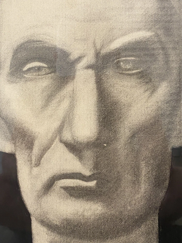 This is an expressive and Unusual Antique American Civil War Abraham LINCOLN Portrait Drawing Painting, likely dating to the 1940's - 1950's. This piece depicts a very stoic bust-like portrait of a young Abraham Lincoln (1809 - 1865) in stark black, gray, and white, rendered in charcoal on thick woven paper. This portrait is portrayed against a stark black background, with an ovoid dark gray matting and silvered vintage wood frame. The overall appearance of these elements creates a very captivating image, which may have been a maquette for a marble bust of this legendary American President. This piece appears to be unsigned, but perhaps you recognize the artist or their work? An old framer's label on the verso reads: "Lincoln Park...Chicago, Illinois." Approximately 20 1/8 x 24 1/4 inches (including frame.) Actual visible artwork is approximately 15 x 18 inches. Very good condition for age, with some moderate scuffing, chipping and edge wear to the vintage frame (please see photos.) Acquired in Los Angeles County, California. If you like what you see, I encourage you to make an Offer. Please check out my other listings for more wonderful and unique artworks! About this Artwork: Abraham Lincoln THE 16TH PRESIDENT OF THE UNITED STATES The biography for President Lincoln and past presidents is courtesy of the White House Historical Association. Abraham Lincoln became the United States’ 16th President in 1861, issuing the Emancipation Proclamation that declared forever free those slaves within the Confederacy in 1863. Lincoln warned the South in his Inaugural Address: “In your hands, my dissatisfied fellow countrymen, and not in mine, is the momentous issue of civil war. The government will not assail you…. You have no oath registered in Heaven to destroy the government, while I shall have the most solemn one to preserve, protect and defend it.” Lincoln thought secession illegal, and was willing to use force to defend Federal law and the Union. When Confederate batteries fired on Fort Sumter and forced its surrender, he called on the states for 75,000 volunteers. Four more slave states joined the Confederacy but four remained within the Union. The Civil War had begun. The son of a Kentucky frontiersman, Lincoln had to struggle for a living and for learning. Five months before receiving his party’s nomination for President, he sketched his life: “I was born Feb. 12, 1809, in Hardin County, Kentucky. My parents were both born in Virginia, of undistinguished families–second families, perhaps I should say. My mother, who died in my tenth year, was of a family of the name of Hanks…. My father … removed from Kentucky to … Indiana, in my eighth year…. It was a wild region, with many bears and other wild animals still in the woods. There I grew up…. Of course when I came of age I did not know much. Still somehow, I could read, write, and cipher … but that was all.” Lincoln made extraordinary efforts to attain knowledge while working on a farm, splitting rails for fences, and keeping store at New Salem, Illinois. He was a captain in the Black Hawk War, spent eight years in the Illinois legislature, and rode the circuit of courts for many years. His law partner said of him, “His ambition was a little engine that knew no rest.” He married Mary Todd, and they had four boys, only one of whom lived to maturity. In 1858 Lincoln ran against Stephen A. Douglas for Senator. He lost the election, but in debating with Douglas he gained a national reputation that won him the Republican nomination for President in 1860. As President, he built the Republican Party into a strong national organization. Further, he rallied most of the northern Democrats to the Union cause. On January 1, 1863, he issued the Emancipation Proclamation that declared forever free those slaves within the Confederacy. Lincoln never let the world forget that the Civil War involved an even larger issue. This he stated most movingly in dedicating the military cemetery at Gettysburg: “that we here highly resolve that these dead shall not have died in vain–that this nation, under God, shall have a new birth of freedom–and that government of the people, by the people, for the people, shall not perish from the earth.” Lincoln won re-election in 1864, as Union military triumphs heralded an end to the war. In his planning for peace, the President was flexible and generous, encouraging Southerners to lay down their arms and join speedily in reunion. The spirit that guided him was clearly that of his Second Inaugural Address, now inscribed on one wall of the Lincoln Memorial in Washington, D. C.: “With malice toward none; with charity for all; with firmness in the right, as God gives us to see the right, let us strive on to finish the work we are in; to bind up the nation’s wounds…. ” On Good Friday, April 14, 1865, Lincoln was assassinated at Ford’s Theatre in Washington by John Wilkes Booth, an actor, who somehow thought he was helping the South. The opposite was the result, for with Lincoln’s death, the possibility of peace with magnanimity died.