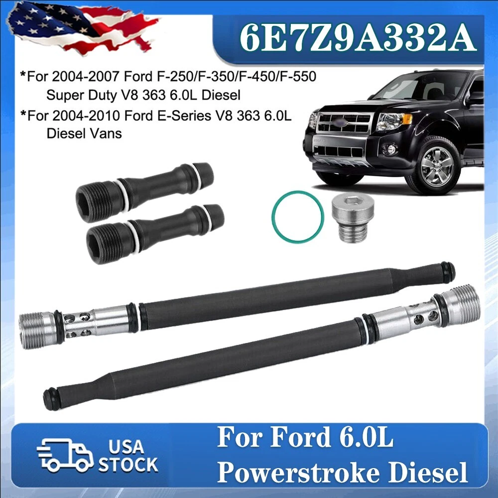 Note: Any Free Shipping Promotion is Valid to the 48 contiguous states. for Alaska, Hawaii, Puerto Rico, Guam,Virgin Islands and Samoa, extra shipping fee will be charged. Application : Fits for 04 - 10 for Ford E-Series / F-Series 6.0L POWER STROKE DIESEL TURBO High Pressure Oil Stand Pipe & Dummy Plug Kit Reference OEM NUmber: 6E7Z-9A332-A, 6E7Z-9A332-B Specifications: * Quantity: 2 Stand Pipe : 6E7Z-9A332-A 2 Dummy Plug : W302908 1 Fuel Rail Oil Tube Plug : 3C3Z-9K042-A 1 O-Ring : W302675 * Warranty: 1 Year * Brand New for Ford Diesel High Pressure Oil Stand Pipe * Fits models with V8 6.0L Diesel Engine only Applications : 2004-10 for Ford E350 Van V8 6.0L Diesel for Ford 2004-10 for Ford E450 Van V8 6.0L Diesel for Ford 2004-10 for Ford E550 Van V8 6.0L Diesel for Ford 2004-10 for Ford F250 Super Duty Truck V8 6.0L Diesel for Ford 2004-10 for Ford F350 Super Duty Truck V8 6.0L Diesel for Ford 2004-10 for Ford F450 Truck V8 6.0L Diesel for Ford 2004-10 for Ford F550 Truck V8 6.0L Diesel for Ford 2004-2010 for Ford E-350 Super Duty 6.0L 363ci OHV V8 DIESEL TURBO 2004-2010 for Ford E-450 Super Duty 6.0L 363ci OHV V8 DIESEL TURBO 2004-2007 for Ford F-250 Super Duty 6.0L 363ci OHV V8 DIESEL TURBO 2004-2007 for Ford F-350 Super Duty 6.0L 363ci OHV V8 DIESEL TURBO 2004-2007 for Ford F-450 Super Duty 6.0L 363ci OHV V8 DIESEL TURBO 2004-2007 for Ford F-550 Super Duty 6.0L 363ci OHV V8 DIESEL TURBO Please feel free to contact us via eBay message