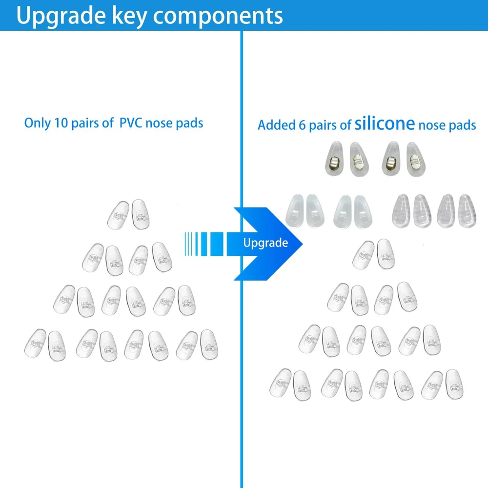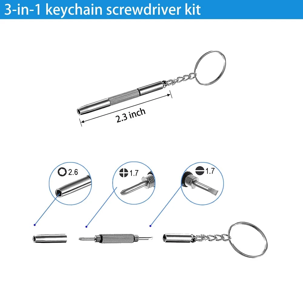 【Exquisite eyewear Repair kit】 The eyeglass repair kit contains about 520 PCS screws of different sizes, 16 pairs of silicone nose pads, cleaning cloths, tweezers, and screwdriver. We store them in small storage boxes for easy use and maintenance. 【The Keychain Screwdriver】It comes in three modes:1.7mm Phillips, 1.7mm flat, 2.5mm nut driver. It is specially designed for eyeglasses, watches, small clocks, and other small electronics. 【Repair Kit accessories】 In addition to the usual accessories, each glasses repair kit comes with a separate phillips 2.0 and flat head 2.0 screwdriver, washer, screw cap, ear hook, and air non-slip nose pads, which can facilitate the repair of most styles of glasses. 【Easy to use】 This eyewear repair kit is easy to use, whether it's changing nose pads or screws. (Warm tip: When operating, please cover the lens of the glasses with a cleaning cloth to avoid scratching your glasses.) 【After-sales service】 Please understand the product details before purchasing to ensure that the accessories in the repair kit match your glasses. If you have any questions, please feel free to contact us. We hope to provide you with a pleasant shopping experience.