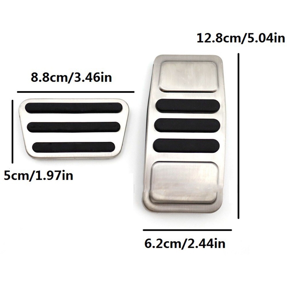 eBay install 2015-2023 Ford Mustang with automatic transmission (not suitable for Mustang MACH-E) *Installing left-hand drive and right-hand drive Material Science: Brushed stainless steel, TPE rubber, environmentally friendly and durable Size: 12.8 * 6.2cm/5.04 * 2.44inch 8.8*5cm/3.46*1.97inch There may be deviation in manual measurement Anti slip surface design: Prevent slipping. Improve overall driving experience and safety Upgrade design: Enhance the interior appearance with our pedal kit Installation: Easy to install without drilling 1. Brake pedal: remove the factory rubber with a screwdriver, and then install the brake pedal cover 2. Accelerator pedal: no rubber. Directly cover the accelerator pedal *If it's hard to wear them, you can put them in hot water to make the rubber softer. Or add some soap Included Packages 1x accelerator pedal cover 1x brake pedal cover Because cars of the same model may be produced differently in different countries. Please make sure that your car parts are the same as our pictures, otherwise they will not fit. If there are any differences, please contact us before purchasing, thank you!