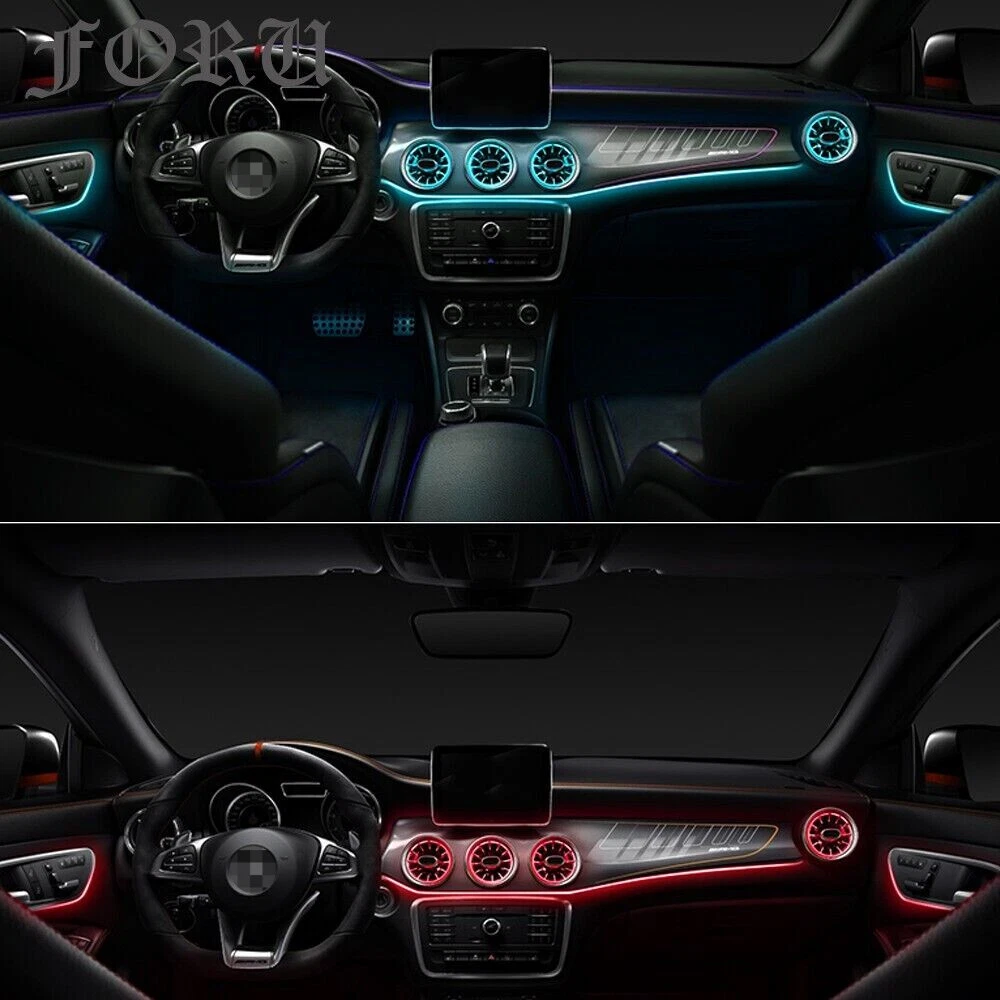Add a touch of style and comfort to your Mercedes Benz W117 CLA180 CLA200 CLA250 CLA45AMG with this LED Air Vent Ambient Light Interior. It features easy installation, easy cleaning, and a painted finish for a sleek look. This Dashboard AC Vent is a great addition to your car's interior. With its performance parts, you can enjoy a comfortable ride without worrying about the condition of your vehicle. Get your hands on this high-quality product now and experience a new level of driving pleasure. Detail information: Condition : New Material : Plastic 12 colors Ambient Light Kit Fitme nt: for Mercedes Benz w117 cla180 cla200 cla250 cla45AMG 2013 2014 2015 2016 2017 2018 2019 Package Included ( 10pcs/set ) : 5pcs Front Dashboard Air Vent Lights 4pcs Door Light 1pc Dashboard Light Strips NOTE: NOT Including Installation Guide or Manual. Professional installation is highly recommended .