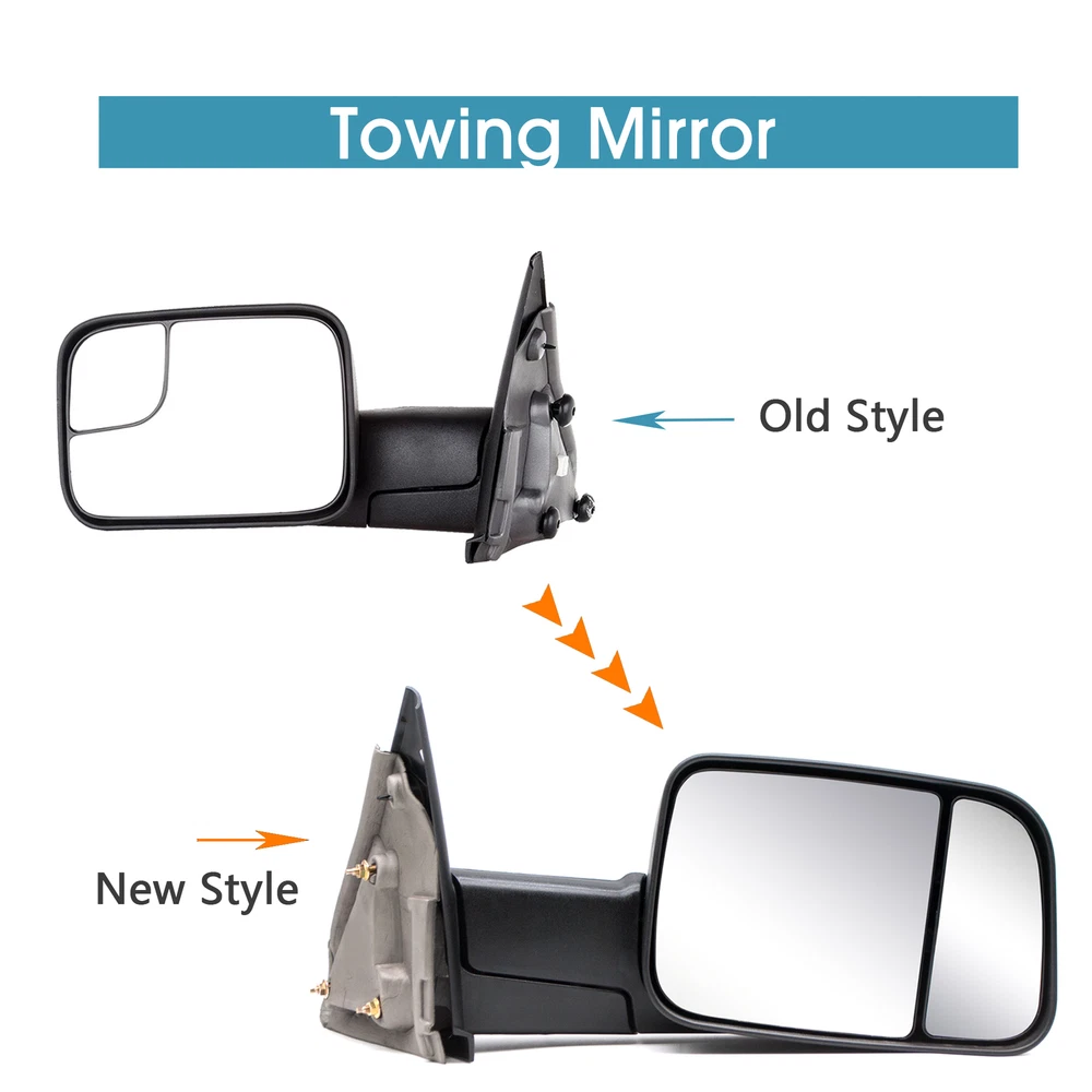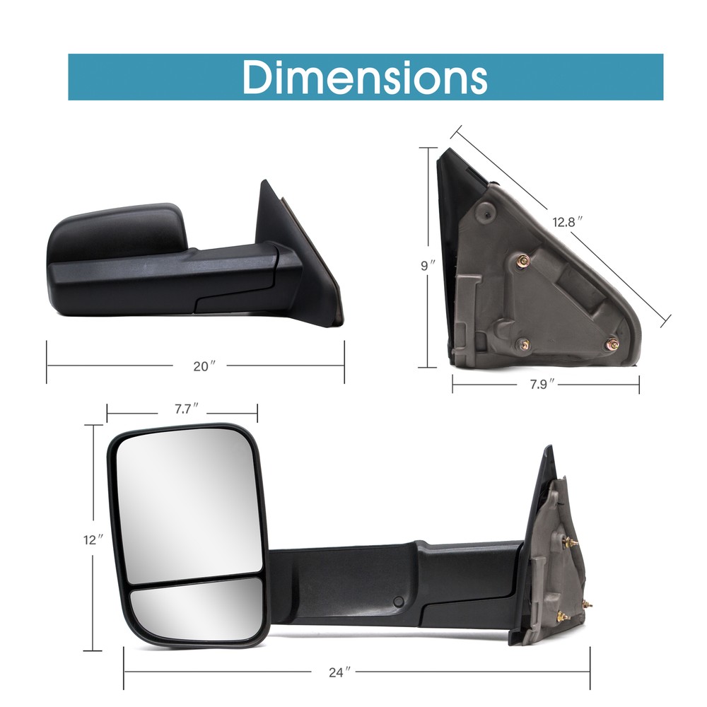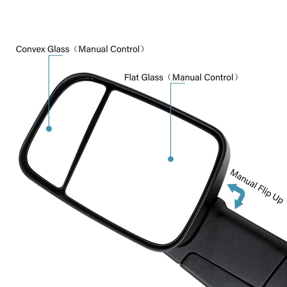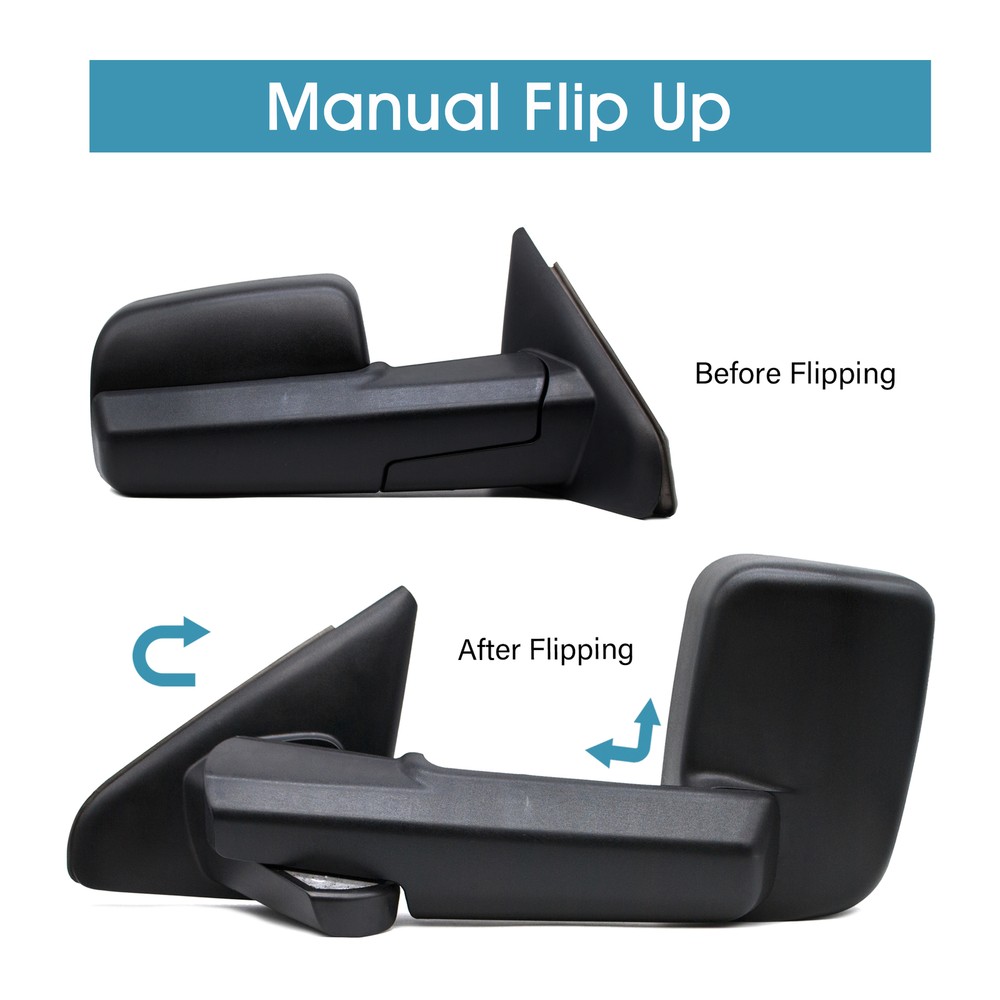 Product Description Detailed description of the product Specifications : Condition New Number Of Pieces 2 Fold Away Manual Fold Warranty 1 Year Color Black Location Passenger Right Side + Driver Left Side Features: Manual extended telescoping wide angle mirrors Fits: 2002 2003 2004 2005 2006 2007 2008 Dodge Ram 1500 Towing Mirrors 2003 2004 2005 2006 2007 2008 2009 Dodge Ram 2500 3500 Towing Mirrors Note : These mirrors will only work properly on vehicles with these exact options. If your vehicle does not have the options listed, these mirrors may not function properly. No installation guide. Professional installation is highly recommended. In the event the item should fail due to manufacturing defects during intended use, we will replace the part by free.(1 Year Warranty) If you encounter any problems, please contact us and we will provide you with solutions. Thank you! Payment Shipping Returns Contact Us PayPal is our preferred method of payment for all of our eBay sales. For customer service please contact us via eBay MessagesImmediate payment via PayPal is required for all Buy It Now items. If you need special arrangements, please contact us through eBay messages. Generally, all goods will be shipped within 24 hours after the payment on the working day (except for goods sent from China). If you want to cancel the order or change the address, please contact us within 6 hours after payment, otherwise we will not be responsible. It takes 3-5 working days for logistics and transportation to be delivered. If you are not satisfied with your purchase, you may return it, for a refund or replacement - subject to the following: Contact us through eBay messages or the returns link to receive a Returned Merchandise Authorization (RMA) number to ensure proper handling of the return and/or replacement. In order to be eligible for a full refund, less shipping expenses, your returned merchandise must be in its original new condition, as shipped, with all packaging, manuals, and paperwork intact and unaltered. Items which have been opened are returnable, however they will carry a restocking fee. If that product is returned for a refund, the shipping expenses incurred, will be deducted from the refund. If an item is refused, the carrier bills us for shipping both ways, and these expenses incurred on your behalf need to be deducted from your refund If you have a question about a part you should contact us before buying.And If you have any questions after purchase, please contact us and we will provide a satisfactory solution. Payment PayPal is our preferred method of payment for all of our eBay sales. For customer service please contact us via eBay MessagesImmediate payment via PayPal is required for all Buy It Now items. If you need special arrangements, please contact us through eBay messages. Shipping Generally, all goods will be shipped within 24 hours after the payment on the working day (except for goods sent from China). If you want to cancel the order or change the address, please contact us within 6 hours after payment, otherwise we will not be responsible. It takes 3-5 working days for logistics and transportation to be delivered. Returns If you are not satisfied with your purchase, you may return it, for a refund or replacement - subject to the following: Contact us through eBay messages or the returns link to receive a Returned Merchandise Authorization (RMA) number to ensure proper handling of the return and/or replacement. In order to be eligible for a full refund, less shipping expenses, your returned merchandise must be in its original new condition, as shipped, with all packaging, manuals, and paperwork intact and unaltered. Items which have been opened are returnable, however they will carry a restocking fee. If that product is returned for a refund, the shipping expenses incurred, will be deducted from the refund. If an item is refused, the carrier bills us for shipping both ways, and these expenses incurred on your behalf need to be deducted from your refund Contact Us If you have a question about a part you should contact us before buying.And If you have any questions after purchase, please contact us and we will provide a satisfactory solution. Related Products Pair Tow Mirrors Manual For 2014 2015 Dodge Ram 1500 2500 3500 4500 Pickup Pair Towing Mirrors Power Heated Turn Signal For 2009-2018 Dodge Ram 1500 2500 Pair Towing Mirrors Power Heated For 2009-2018 Dodge Ram 1500 2500 3500 Black Pair Tow Mirrors Manual Fold Fits 2006 2007 2008 Dodge Ram 2500 3500 4500 Chrome Towing Mirrors Power Heated For 02-08 Dodge Ram 1500 2003-09 Ram 2500/3500 LH+RH Pair Towing Mirrors Power Signal Light For 2003-2009 Dodge Ram 2500/3500 Black Heated NO √ √ NO √ √ Power NO √ √ NO √ √ Turn Signal Light NO √ NO NO √ NO temperature sensor NO √ √ NO NO NO Puddle Light NO √ √ NO √ √ Arrow Signal Light NO NO √ NO NO √ housing color Black Black Black Chrome Black Black folding Manual Manual Manual Manual Manual Manual fit for 09-18 Ram 1500 2500 3500 4500 5500 09-18 Ram 1500 2500 3500 4500 5500 09-18 Ram 1500 2500 3500 4500 5500 02-08 Ram 1500 03-09 Ram 2500 3500 02-08 Ram 1500 03-09 Ram 2500 3500 02-08 Ram 1500 03-09 Ram 2500 3500 [22 Pin Plug] On Nov 29, 2024 at 10:20:39 PST, seller added the following information: