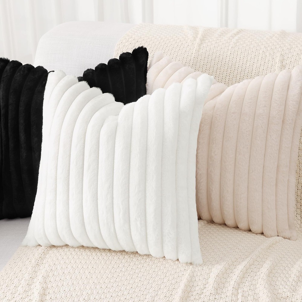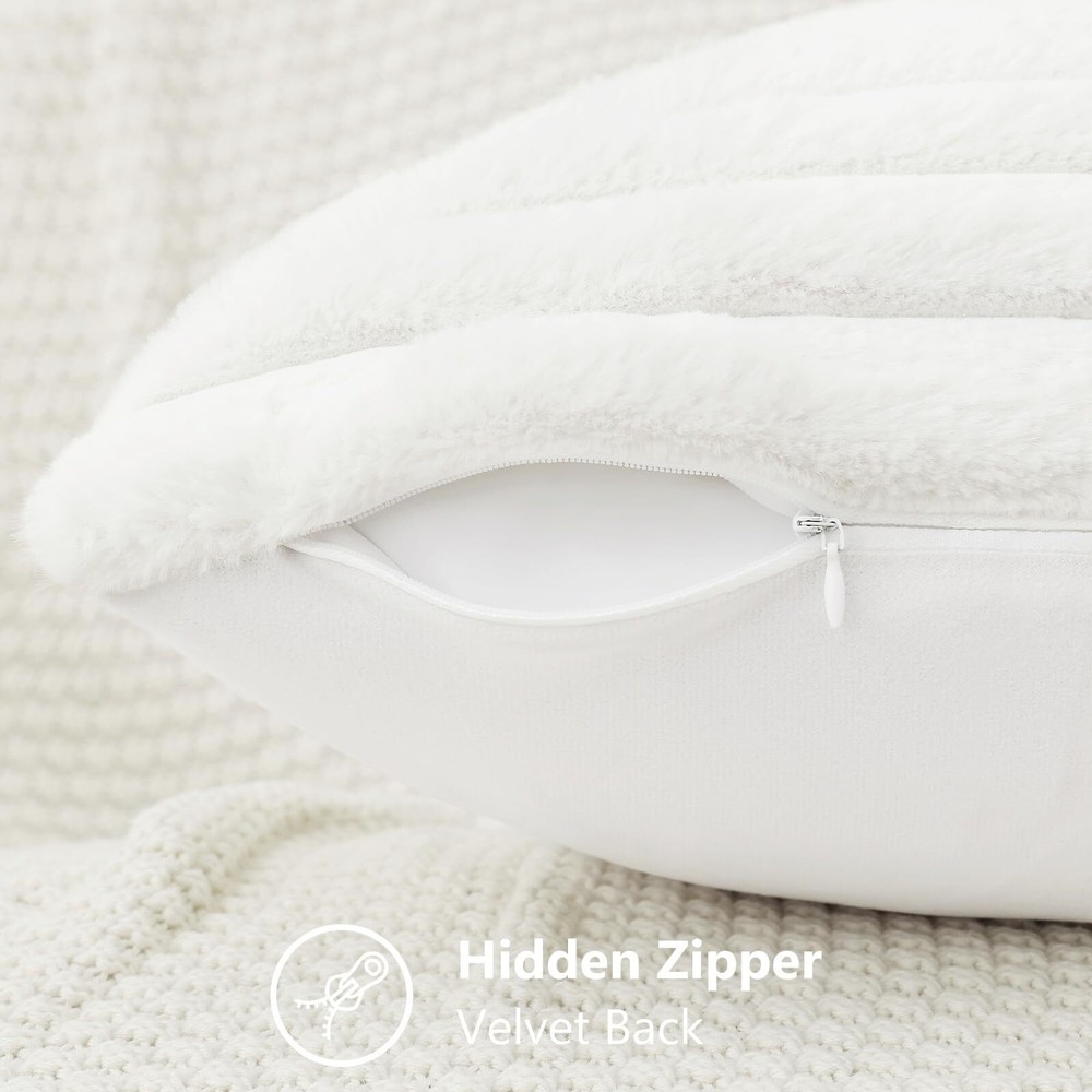 Soft & Plush: The fluffy Spring pillow covers are super soft on both sides. The front of the decorative pillow covers is cozy faux rabbit fur, and velvet on the back, smooth and soft to touch Hidden Zipper: The sofa pillow covers are designed with a hidden zipper that works smoothly, very easy for insertions and replacements, while keeps an elegant look Package Includes: Pack of 2 white pillow covers 20x20 inch. Pillow covers only, INSERTS NOT INCLUDED. The color may vary under different lights or on different screens Ideal Decoration: The plush throw pillow covers will add an elegant touch to your home space. Suitable for living room, bedroom, sofa, couch, office, cafe, party, etc, various colors and sizes are versatile Easy Care: The decorative faux fur throw pillow cases are easy to care for. Machine washable in gentle mode. Tumble Dry Low. Do Not Iron