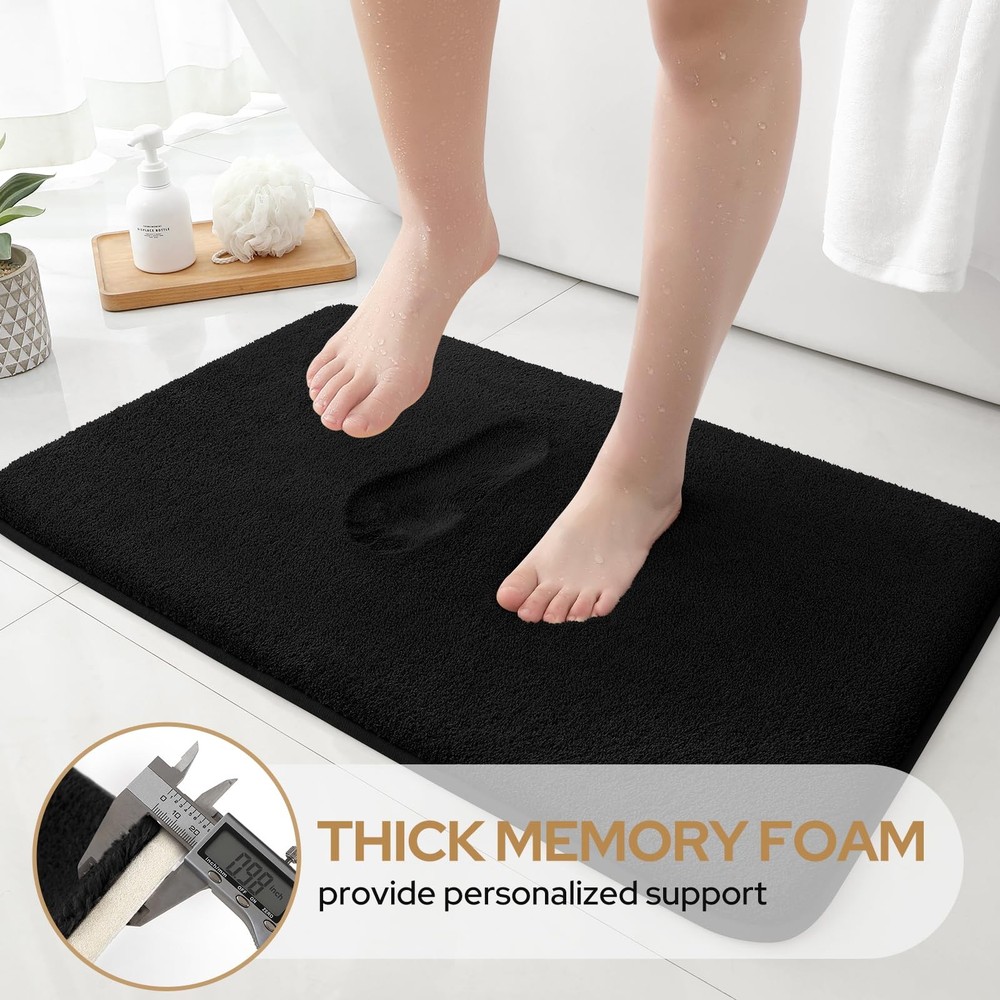 The memory foam bath mat offers supreme comfort and support for your feet after a shower or bath. Crafted from memory foam, it molds to the contours of your feet, relieving pressure and providing a cushioned experience. The soft and absorbent top layer efficiently dries wet feet, while the non-slip backing ensures stability on bathroom floors. Enjoy a luxurious and safe post-bath experience with this thick and water-absorbent memory foam bath mat. Softer and More Comfortable - combined with fluffier material and better constructed memory foam, newly designed bath mat makes it feel like you're walking on a cloud More Absorbent - premium material absorbs excess water, dry your feet quickly, keep your feet warm and cozy after bathing Non-slip and Durable Backing - designed with durable PVC backing, this bath rug features stronger grip umderneath, keep the mat firmly in place while stepping on it. Tips: Keep the floor dry and clean before using it, to prevent the rug from slipping Multi-puepose - bath mat help you create a warm and comfortable home environment. Multiple sizes and colors, making it easy to fit bathroom, kitchen, living room, laundry room, hallway, bedroom, etc. Machine Washable - this firmly-woven bathroom rug is easy to clean, not easy to shade, fall off or become matted. Tips: wash in cold water with mild detergent,tumble dry on low heat or lay to air dry. When you receive it, let it sit for some time under warm air or iron to remove the fold lines quickly