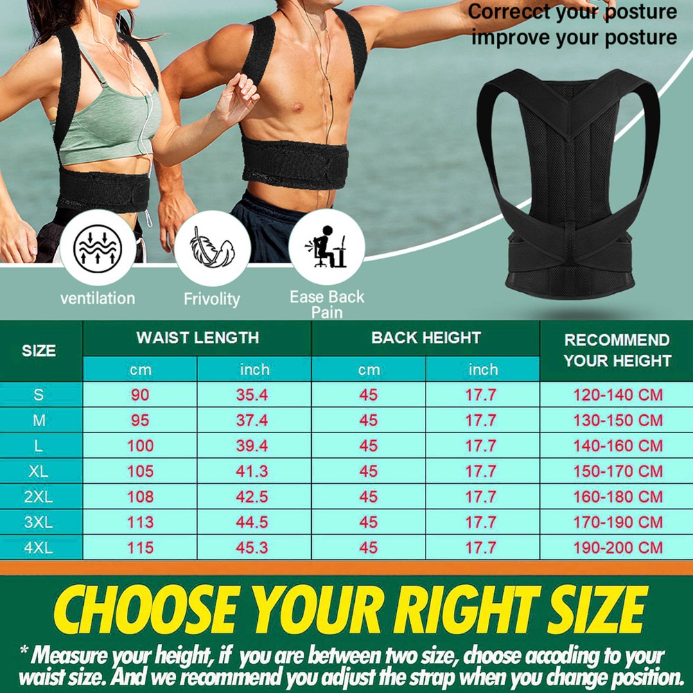 eBay Listing Template Hump Back Posture Corrector Spinal Belt Straight Back Brace Orthosis Correction Product Description π₯ Why This is Your Best Choice? β Targeted Pain Relief in 15 Minutes Eases neck, shoulder, upper/lower back, and lumbar pain caused by slouching, desk work, gym training, or driving. β Invisible Yet Powerful Suppo rt Dual wide flat support ribs hidden inside the back brace provide muscle memory correction, while staying discreet under clothes. β Breathable Neoprene for All-Day Comfort Medical-grade Neoprene wicks moisture, adapts to your body, and prevents skin irritation β even during workouts. β 6 Sizes for Every Body (S-4XL) Adjustable straps fit waist 28"-52" β perfect for teens, adults, plus-size users, and post-pregnancy recovery. π Key Features Youβll Love πΉ Ergonomic Full-Back Support Reinforced ribs align spine, correc t hunchback, and distribute pressure evenly across shoulders/waist. πΉ No Bulk, No Noise Ultra-thin design (0.3cm) with soft edges β zero rustle or visible lines under shirts/dresses. πΉ Easy to Adjust & Clean H ook-and-loop straps secure in seconds. Hand-washable and retains shape after 100+ uses. πΉ Certified Safe & Durable Passed SGS lab tests for stretch resistance (10,000+ cycles) and skin safety (0 harmful chemicals). π₯ Who Needs This? βοΈ Office workers battling "desk hunch" βοΈ Gym enthusiasts lifting weights or doing yoga βοΈ Truck drivers suffering from long-hour sitting βοΈ Seniors needing daily posture support βοΈ Post-surgery/pregnancy recovery π How to Choose Your Size? S ( 28"-32") | M (33"-37") | L (38"-42") | XL (43"-46") | 2XL (47"-49") | 3XL (50"-52") Measure your waist above the belly button for the perfect fit! π₯ Trusted by 50,000+ Users "Finally found a brace that doesnβt dig into my shoulders! The hidden ribs keep my back straight without looking bulky." β Sarah, Nurse & Mom of 3 "Wear it under my uniform all day. My lower back pain reduced 80% in 2 weeks!" β Mike, Delivery Driver