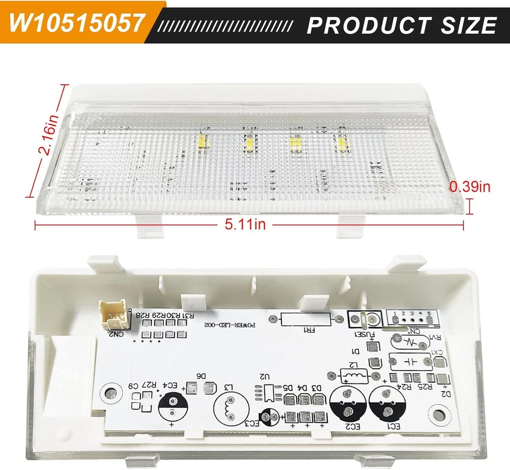Upgraded W10515057 Refrigerator LED Light Board 1PCS Product Details Color: 1PCS W10515057 LED Light Shape: Rectangular Material: Polyvinyl Chloride (PVC) Light Source Type: Light Emitting Diode Brand: Popbee W10515057 Freezer LED Light : It is for Whirlpool/Kenmore/Maytag/Kitchen aid/ikea refrigerators replaces WPW10515057 AP6022533 W10515057 PS11755866 W10398007 refrigerator LED light Premium Quality: W10515057 Refrigerator LED Lights with tapered lens cover can ensure long life with PVC cover, and it's made of waterproof material for greater durability. This whirlpool refrigerator light replacement led will YOUR last w10515057 refrigerator LED light (w150515057, wpw10515057) Widely Compatible: W10515057 freezer light Fits for Whirlpool: WRS322FDAB01 WRS322FDAT00 WRS322FNAE03 WRS325FDAM02 WRS325FNAH01 WRS335FDDB02 WRS342FIAW00 WRS537SIAM01 WRS322FDAB02, Fits for Kenmore: 10651124210 10651799410 10641159211 10641122211 10651129210 10651799411 10641159212 10651133210, Fits for Maytag: MSF25D4MDM02 MSF25D4XAB00 MSF25D4XAM00 MSF25D4XAW00, and fits for Kenmore 1065,1064 series Confident Purchases: if you have any questions after receiving the package, we are always at your service