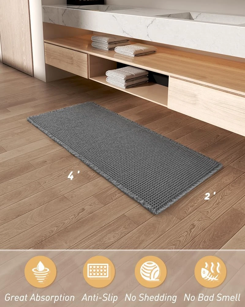 Upgraded Waffle Runner Rug Super Absorbent Non Slip Bath Mats for Bathroom Floor