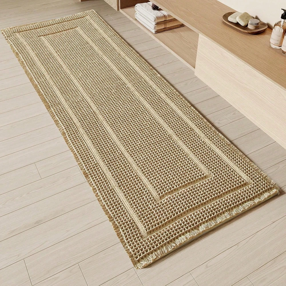 🛁 Upgrade Your Bathroom with Our Waffle Bath Mat! 🛁 • Super Absorbent Design: This upgraded waffle bath mat is crafted for quick drying. It's perfect for bathrooms, ensuring your floor stays dry and safe. The mat's unique structure absorbs water efficiently, making it ideal for wet areas. • Non-Slip & Washable: Crafted with safety in mind, this mat features a non-slip design. It's also easy to clean, thanks to its washable feature. Ideal for bedrooms, kitchens, or laundry rooms, it adds functionality to any space. • Versatile Use: This ultra-soft mat is suitable for various rooms. Its soft texture makes it a comfortable addition to your home. Enjoy a safer, drier environment with this versatile, absorbent bath mat.