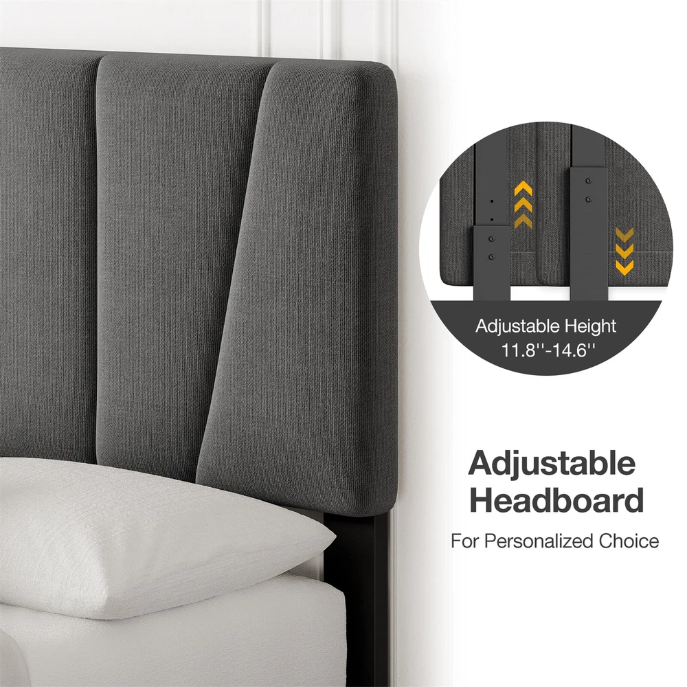Features: Adjustable Headboard, 4 Storage Drawers Country/Region of Manufacture: China UPC: Does not apply Frame Material: Wood, Metal, Fabric Linen Color: Dark Grey Product Dimensions: 78"L x 57.1"W x 45.7"H Maximum Weight Recommendation: 800 Pounds gtin13: Does not apply Brand: IDEALHOUSE Manufacturer Warranty: 5 Years Type: Bed Frame Number of Drawers: 4 Compatible Mattress Size: Full