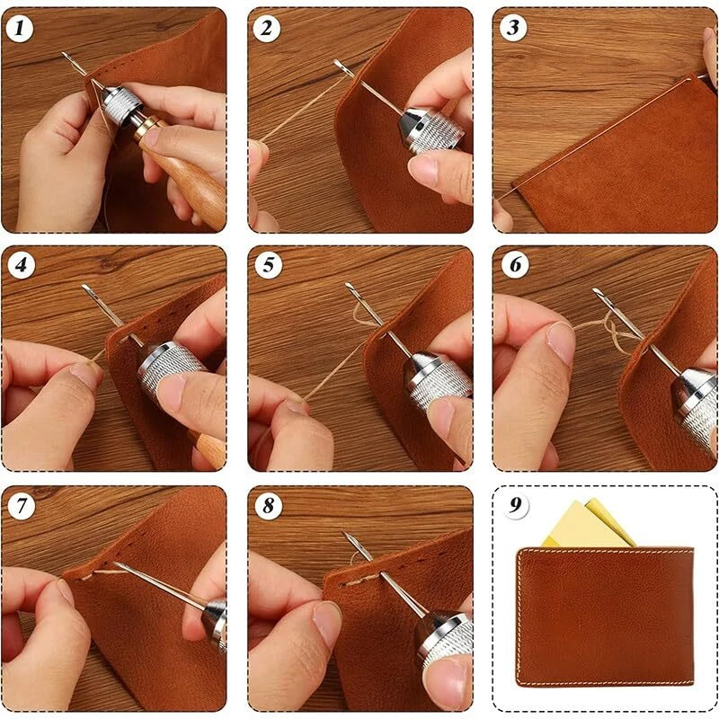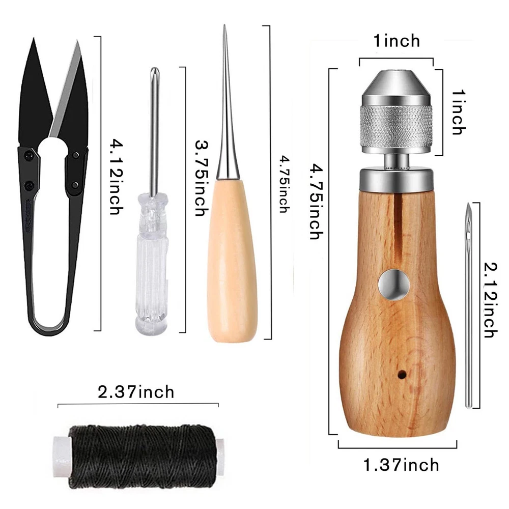 Upholstery Repair Kit: The leather stitching kit includes needle exchange sewing awl with 3 stainless steel needles, 7 big eye blunt needles,1 scissors, 1 hook awl, 6 sewing thread, 2 sewing thimble, 1 tape measure, 2 finger cots. Rich tools can meet your different needs, very suitable for beginners and travelers. Leather Sewing Accessories: 6 colors sewing thread is made of good quality material. The awl is made of good quality metal with a wooden handle, which is smooth and comfortable. The wax content of the wax thread is just right, and the leather upholstery repair kit is a good helper to help you repair damaged items and save money. Sewing Awl: The sewing awl kit for repairing come with 3 stainless steel needles and a wooden handle for getting through thick sewing surface.The 3 needles are in length of 3.1 inch, the whole length with wooden handle is about 6.6 inch. The awl sewing tool help you to drill or expand holes, make sewing faster and easier. Wide Application: Our 47 piece leather thread set can be used for leather, fabric, denim, canvas or tarpaulin, and use these hand needles on carpets, canvas, upholstery, coats, tents, mattresses, furs and leather etc. It is an ideal gift for family and friends! Easy to Use: Leather craft wax thread is made of good quality, it feels smooth to the hand, durable and not easy to fray. And it can easily go through a leather sewing needle and pull through the leather smoothly. Whether you are a professional or a beginner, you will find this repair kit convenient and easy to use. Especially suitable for DIY hand sewing lovers.