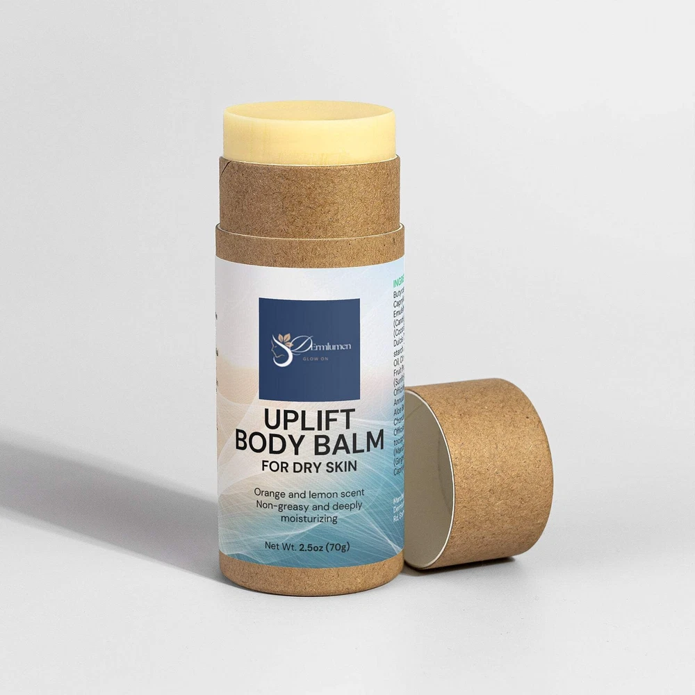 Uplift Body Balm This body balm is a deeply moisturizing treatment for dry skin. It immediately replenishes moisture while natural plant extracts soothe the skin. It is non-sticky, non-greasy and leaves no residue on the skin. Easy to apply, this balm can be used on any part of the body.Plus, it is eco-friendly! One body balm is equivalent to 2 full regular lotion bottles. This body balm is packaged in an biodegradable container, made with soybean wax and rice glue. This Body Balm version is scented with Orange, Lemon, Mandarin and Ginger Oils for amazing aromatherapy benefits! Ingredients: Butyrospermum Parkii (Shea) Butter, Caprylic/capric triglyceride, Emulsifying Wax, Euphorbia cerifera (Candelilla) Wax, Theobroma Cacao (Cocoa) Butter, Prunus Amygdalus Dulcis (Sweet Almond) Oil, Tapioca starch, Citrus Limon (Lemon) Peel Oil, Citrus sinensis (Blood Orange) Fruit Peel Oil, Helianthus annuus (Sunflower) Seed Oil, Calendula Officinalis Flower Extract, Helianthus Annuus (Sunflower) Flower Extract, Aloe Barbadensis Leaf Extract, Chondrus Crispus Extract, Althaea Officinalis Root Extract, d-alpha-tocopherol, Citrus reticulata (Mandarin) Oil, Zingiber Officinale (Ginger) Root Oil, Phenoxyethanol, Caprylyl GlycolManufacturer's country: USAProduct amount: 2.5 ozGross weight: 0.2lb/93.57gSuggested use: Push the tube slightly and massage the product onto the skin.Warning: This product contain essential oils - perform a patch test before application: apply a small amount of oil to your skin and monitor for 24-48 hours. For external use only. Keep out of reach from children. Store in a cool, dry place. Uplift Body Balm This body balm is a deeply moisturizing treatment for dry skin. It immediately replenishes moisture while natural plant extracts soothe the skin. It is non-sticky, non-greasy and leaves no residue on the skin. Easy to apply, this balm can be uséd on any part of the body. Plus, it is eco-friendly! One body balm is equivalent to 2 full regular lotion bottles. This body balm is packaged in an biodegradable container, made with soybean wax and rice glue. This Body Balm version is scented with Orange, Lemon, Mandarin and Ginger Oils for amazing aromatherapy benefits! Ingredients: Butyrospermum Parkii (Shea) Butter, Caprylic/capric triglyceride, Emulsifying Wax, Euphorbia cerifera (Candelilla) Wax, Theobroma Cacao (Cocoa) Butter, Prunus Amygdalus Dulcis (Sweet Almond) Oil, Tapioca starch, Citrus Limon (Lemon) Peel Oil, Citrus sinensis (Blood Orange) Fruit Peel Oil, Helianthus annuus (Sunflower) Seed Oil, Calendula Officinalis Flower Extract, Helianthus Annuus (Sunflower) Flower Extract, Aloe Barbadensis Leaf Extract, Chondrus Crispus Extract, Althaea Officinalis Root Extract, d-alpha-tocopherol, Citrus reticulata (Mandarin) Oil, Zingiber Officinale (Ginger) Root Oil, Phenoxyethanol, Caprylyl Glycol Manufacturer's country: USA Product amount: 2.5 oz Gross weight: 0.2lb/93.57g Suggested use: Push the tube slightly and massage the product onto the skin. Warning: This product contain essential oils - perform a patch test before application: apply a small amount of oil to your skin and monitor for 24-48 hours. For external use only. Keep out of reach from children. Store in a cool, dry place. × × × × Buy now and save! Tell a friend Watch now Postage info Click the Postage tab above the listing description for more info Click the Postage tab above the listing description for more info! Additional delivery notes PICK UP OPTION Sorry, our items are NOT available for pick-up. PAYING VIA PAYPAL We accept PayPal on our all our items so you can shop with confidence. Simple choose the PayPal option when proceeding through the checkout. Additional Information No additional information at this time Ask seller a question You might also like Aloe & Tea Tree Radiance Gel Anti Aging Moisturizer for Normal Skin Anti Aging Moisturizer for Sensitive Skin Dark Spot Serum for Normal Skin Contact To contact our Customer Service Team, simply click the button here and our Customer Service team will be happy to assist. Ask seller a question © Dermlumen Postage Click the Postage tab above the listing description for more info Payment Accepted Payment Methods PayPal Returns Returns are not accepted Seller will pay for return shipping. eBay integration by