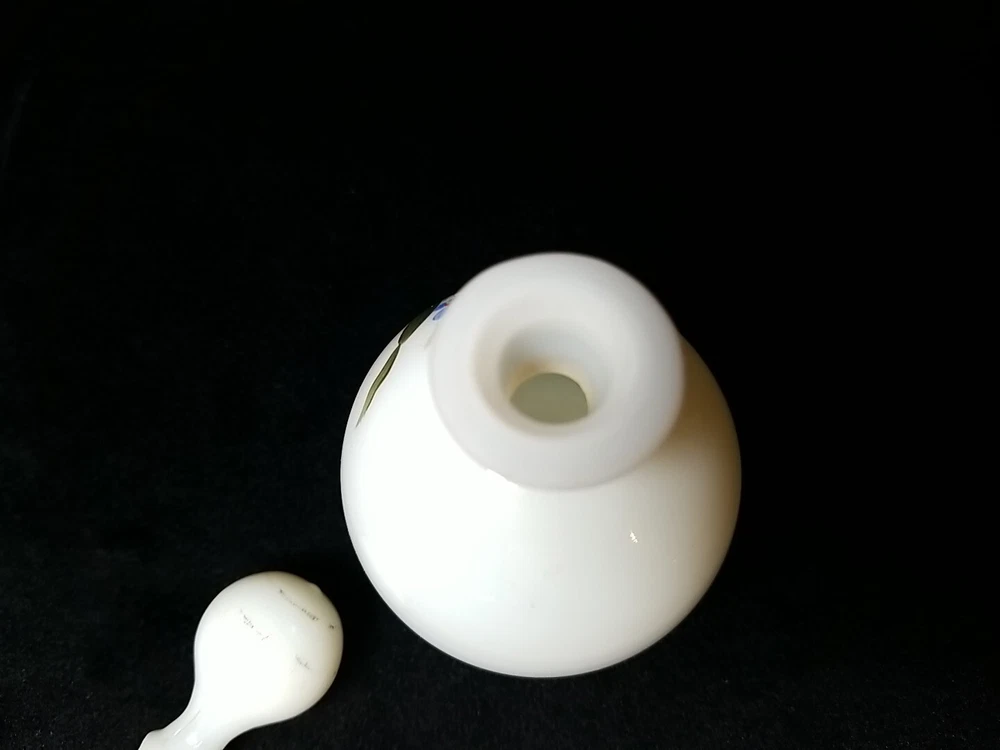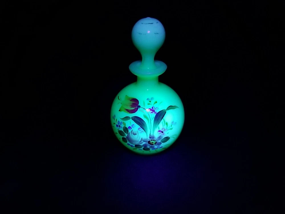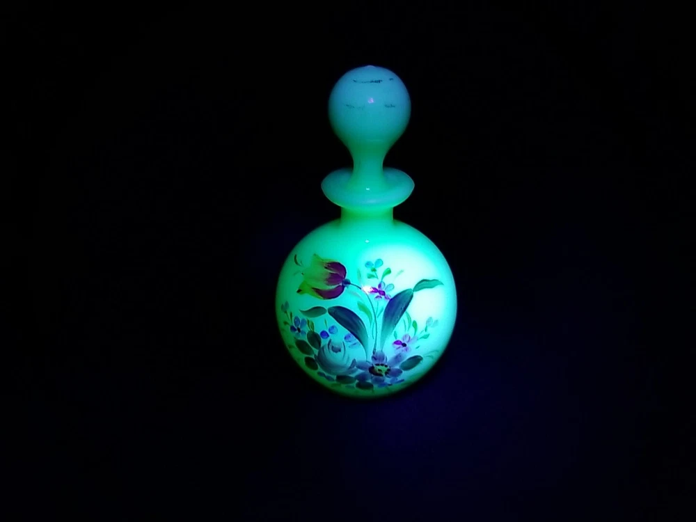 Hand painted milk white uranium glass that glows. No chips cracks or repairs.