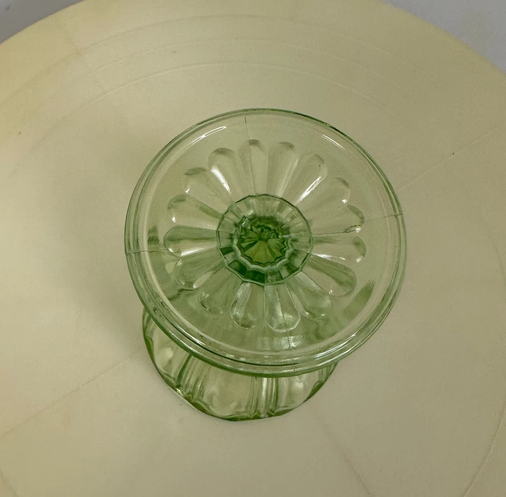 This is a beautiful Footed Tumbler in the Colonial Knife and Fork pattern. It was made by the Hocking Glass Co. from 1934 to 1936. It measures 4 inches tall, 2 1/2 inches across the top, and holds 5 oz. I have 2 available. It is in great condition with no chips or cracks pr scratches. We have other pieces in this pattern up for auction. We will gladly combine items for shipping whenever possible. If you do purchase more than one item, please wait until we send you an updated invoice before payment is made. This new invoice will reflect your combined shipping. From a smoke free home.