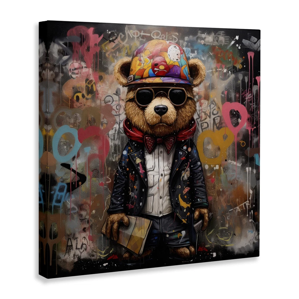Dimensions: 30 x 1.5 x 30 Inches Stretched Canvas Product Sizes include 17"x17", 24"x24", 30"x30" and 36"x36". All products have a 1.5" Depth. Wall Art is Ready to Hang with Hardware Free Hanging. No installation required. For Easy Set Up Lean or Layer Artwork on Shelf or Against Wall. Our stretched canvas is created with the highest standards. We use only the highest quality inks and canvas on our in house Mimaki printers, and then hand cut and stretch each piece over a 1.5 inch thick wooden frame for hanging. Made In USA. Artwork Relates To: Painting, Mural, Graffiti, Animal, Mammal, Modern, Abstract, Bear Design by Lazar Studio