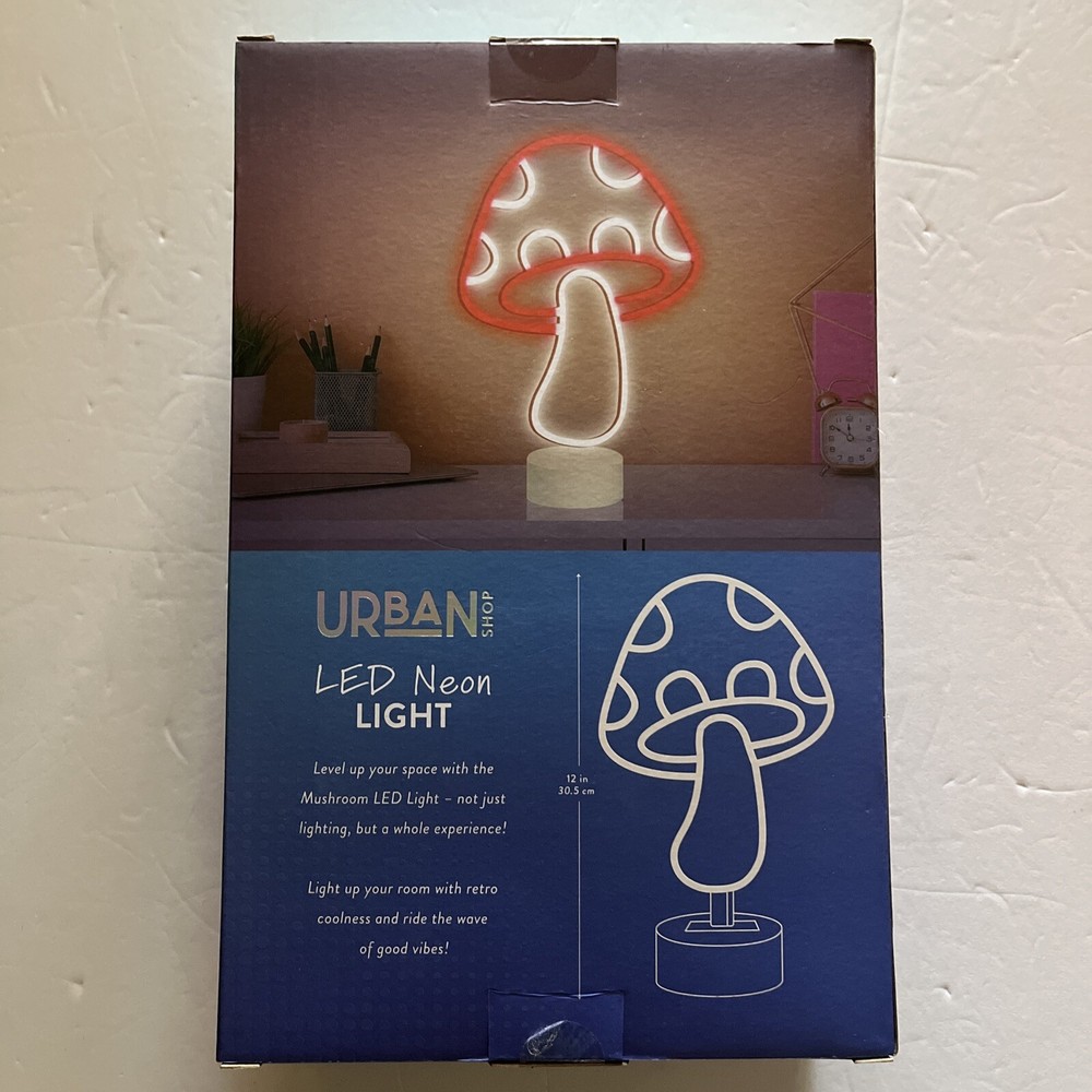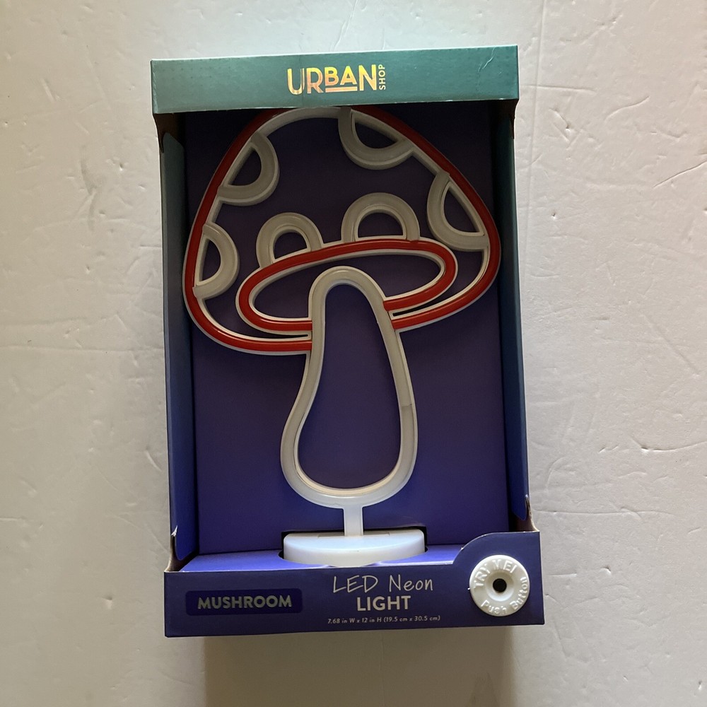 Add a touch of style to your shop or home with this unique Urban Shop Mushroom LED Neon Light. With a height of 12 inches, this light features a vibrant red and white color scheme that will complement any interior decor. Made of durable plastic, it is built to last and is perfect for long-term use. This neon light is easy to install and operates on a voltage of 2V. It is a great addition to your collection of collectible lighting and is manufactured in China. Get your hands on this one-of-a-kind piece today and elevate your space.
