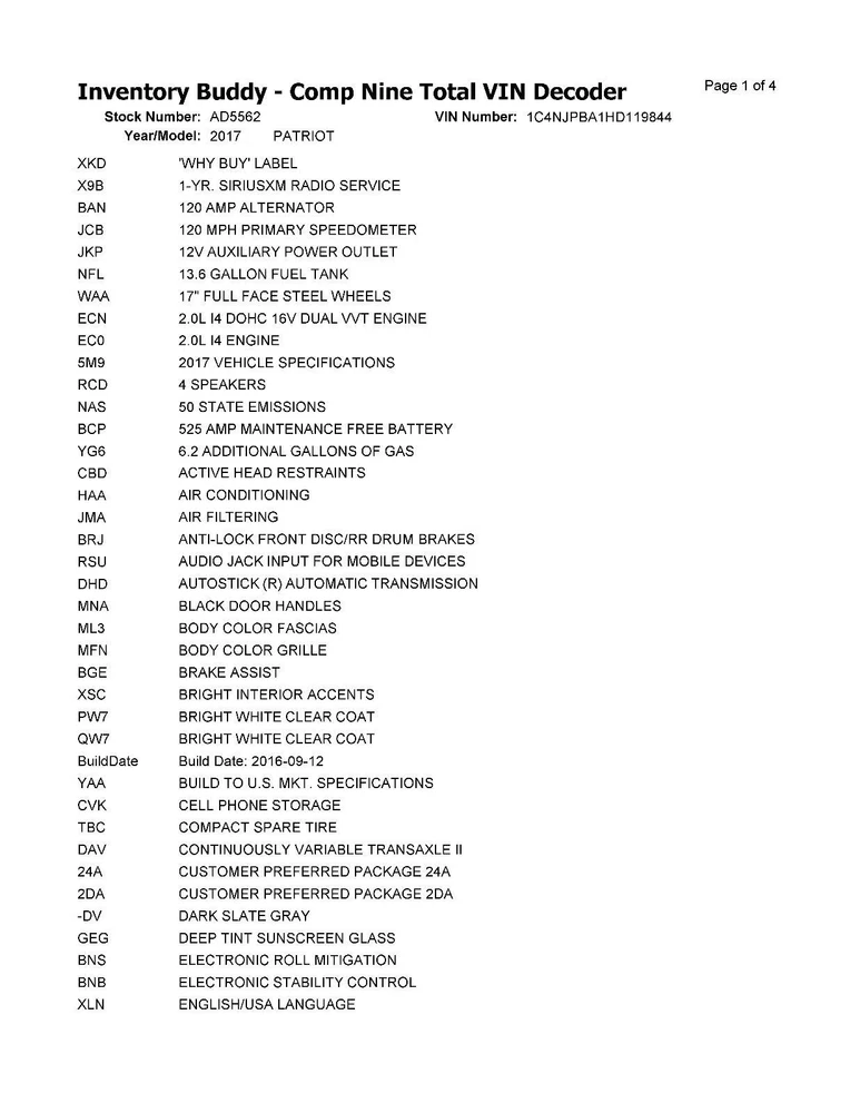 eBay WHI Template Used A/C Compressor fits: 2017 Jeep Patriot Grade A 90 DAY MONEY BACK GUARANTEE!! 100% TESTED!! SELLER & PAYMENT INFORMATION Seller name dentonautowhi See our other listings CUSTOMER SUPPORT If you have questions about the product or your order please contact us via eBay Messages for assistance. Thank you. Business Hours Mon - Fri 8-5 Sat Closed Sun Closed SHIPPING & HANDLING Shipping Service Please refer to shipping section Shipping Cost Please refer to shipping section Order Processing Time 3 business days PART DETAILS Brand UNITED RECYCLERS GROUP Part Number 409088 Item Description A/C Compressor Quantity Needed 1 ITEM SPECIFICS Description Why Buy Recycled? Save money and time in the repair shop. Original parts mean a perfect fit. Every part is cleaned, tested and inspected by experts. All parts are covered by warranty. Parts go back into cars rather than landfill. Type A/C Compressor See Item Specifics section for additional specifications about this part. Additional Information We distribute A/C Compressor's. This is a recycled product. URG is a group of certified recyclers of quality replacement parts. Unless specified as Universal this is a direct fit A/C Compressor. A reminder that this listing is for a single A/C Compressor which may be less than you need for your application. Check the fitment information for the qty your vehicle requires.. Last Updated: 08/27/2024 03:29:08 AM Vehicle Fitment Summary To confirm that this part fits your vehicle, enter your vehicle's Year, Make, Model, Trim and Engine in the Compatibility Table . Also review the notes section in the compatibility chart for additional specifications about this part. This part generally fits Dodge,Jeep vehicles and includes models such as Caliber,Compass,Patriot with the trims of 75th Anniversar y Sport Utility 4-Door,Altitude Sport Utility 4-Door,Base Sport Utility 4-Door,Express Hatchback 4-Door,Heat Hatchback 4-Door,High Altitude Sport Utility 4-Door,Latitude Sport Utility 4-Door,Latitude X Sport Utility 4-Door,Limited Sport Utility 4-Door,Mainstre et Hatchback 4-Door,R/T Hatchback 4-Door,Rush Hatchback 4-Door,SE Hatchback 4-Door,Sport Sport Utility 4-Door,SRT-4 Hatchback 4-Do or,SXT Hatchback 4-Door,SXT Plus Hatchback 4-Door,Uptown Hatchback 4-Door. The engine types may include 1.8L 1798CC 110Cu. In. l4 GAS DOHC Naturally Aspirated,2.0L 1998CC 122Cu. In. l4 GAS DOHC Naturally Aspirated,2.4L 2360CC 144Cu. In. l4 GAS DOHC Naturally A spirated,2.4L 2360CC 144Cu. In. l4 GAS DOHC Turbocharged,2.4L 2360CC 144Cu. In. l4 GAS SOHC Naturally Aspirated. This part fits ve hicles made in the following years 2008,2009,2010,2011,2012,2013,2014,2015,2016,2017. To confirm that this part fits your vehicle, enter your vehicle's Year, Make, Model, Trim and Engine in the Compatibility Table . Also review the notes section in the compatibility chart for additional specifications about this part. Interchange Part Numbers This item may interchange to the following part numbers from other brands. This is provided for reference only and does not guarantee that the part your are buying is identical to the part numbers from the brands listed below. To confirm that this part fits your vehicle, enter your vehicle's Year, Make, Model, Trim and Engine in the Compatibility Table . Brand UNITED RECYCLERS GROUP Part Numbers 55111610AA, 55111610AC ABOUT THE SELLER Denton Auto Salvage is a second-generation family-owned business established in 1965 by twins Larry and Gary Denton. Since that time, the internet and technical advances in automobiles have caused many changes to the auto recycling industry; the recyclers that didn’t adapt are no longer in business. At Denton Auto Salvage, not only have we modernized our facility, we’ve also purchased a second facility just south of Topeka in Carbondale, Kansas WARRANTY Warranty Duration 90 Day Warranty Type Replacement Warranty Portions of the part information on this page have been provided by WHI Solutions, Inc. All rights reserved.