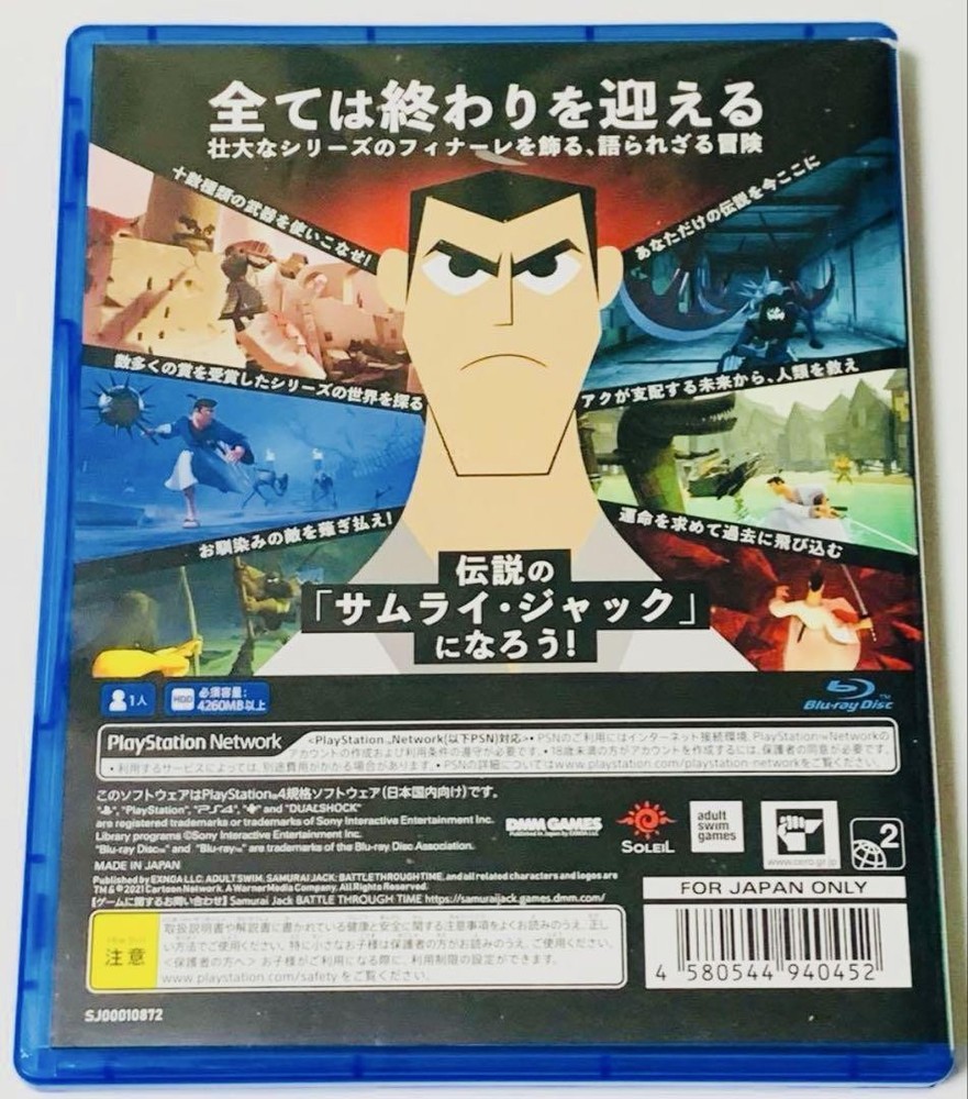 PlayStation 4 PS4 Samurai Jack Battle of Space Time Sonya Japan Ver Used Description There are no noticeable scratches on the disc and it is in good working condition. The manual is in electronic format. The case shows no signs of use and is in good condition with no cracks. It has been confirmed to work. Payment Please pay within 5 days. Shipping Shipping from Japan with Tracking Number & Insurance.We usually ship out your order within 4-6 working days after receiving your payment. About Us A specialty shop offering a wide variety of carefully selected Japanese brand items. Unless marked "used" all of our inventory is brand new, so you can feel confident about your purchase. Even if you think to yourself, "But the item I want is only available in Japan.", make sure to consult with us before giving up hope. We will look for and suggest the best products on your behalf. International Buyers - Please Note Import duties, taxes and charges are not included in the item price or shipping charges. These charges are the buyer's responsibility. Please check with your country's customs office to determine what these additional costs will be prior to bidding/buying. These charges are normally collected by the delivering freight (shipping) company or when you pick the item up - do not confuse them for additional shipping charges.