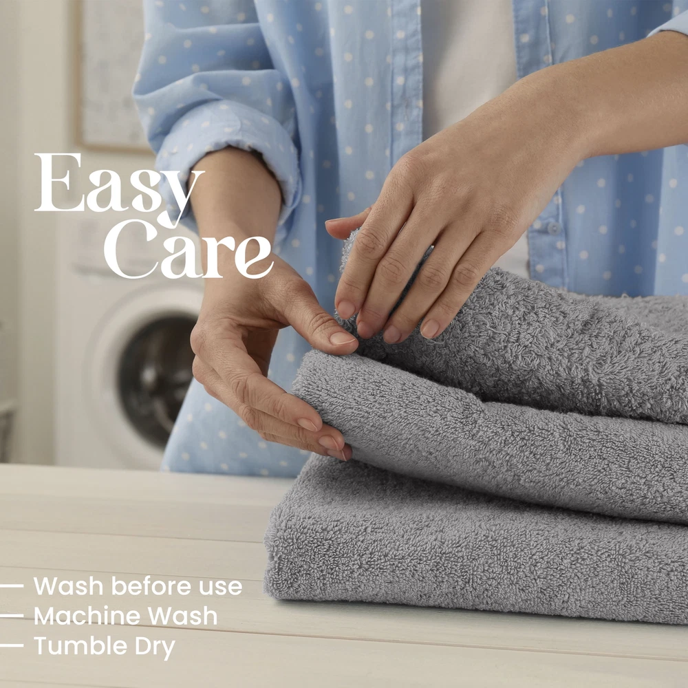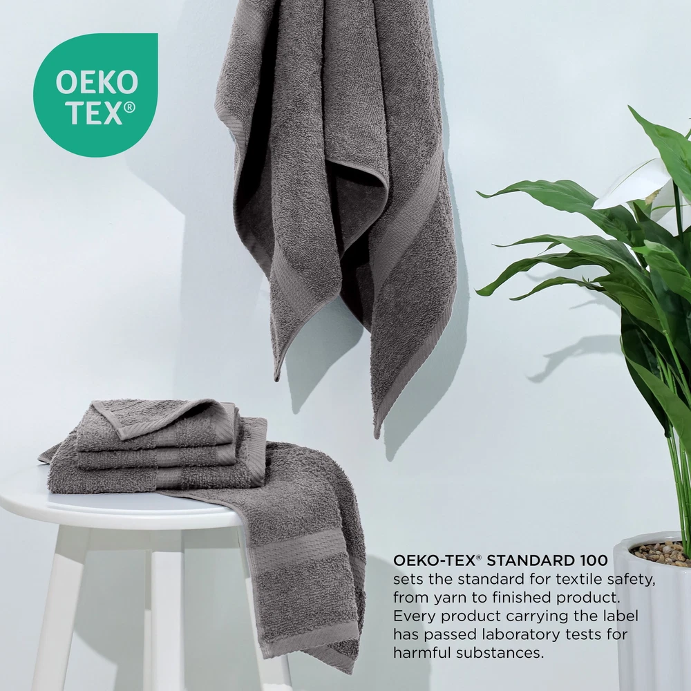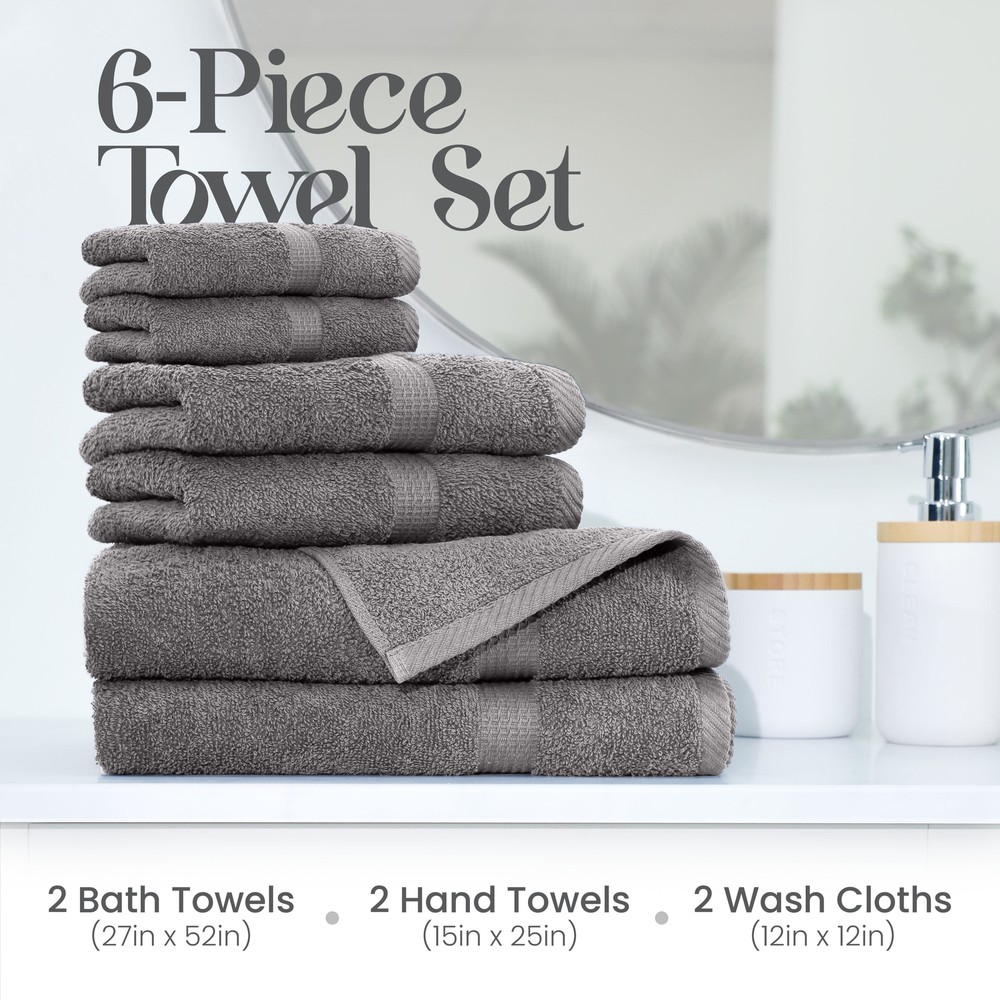 A COMPLETE SET: Complete your bathroom oasis with this 6-piece towel set from Utica. This bath towels set comes with 2 bath towels (27x52), 2 hand towels (15x25), and 2 wash cloths (12x12). This towels set is the perfect gift to friends and family.,WORLD OF BOLD COLOR: The Utica bath towel set comes in a variety of colors that will help revitalize your bathroom. These blue towels will add a pop of color to your space, making every day feel like a spa day. Bathroom sets that enhance your decor.,PREMIUM SOFTNESS: Boldness meets supreme softness with these blue bath towels. Soft towels that wrap you up in warm coziness when you need it most. They are Oeko-Tex certified so you can have a healthier choice for you and your family., About this item A COMPLETE SET: Complete your bathroom oasis with this 6-piece towel set from Utica. This bath towels set comes with 2 bath towels (27x52), 2 hand towels (15x25), and 2 wash cloths (12x12). This towels set is the perfect gift to friends and family. WORLD OF BOLD COLOR: The Utica bath towel set comes in a variety of colors that will help revitalize your bathroom. These blue towels will add a pop of color to your space, making every day feel like a spa day. Bathroom sets that enhance your decor. PREMIUM SOFTNESS: Boldness meets supreme softness with these blue bath towels. Soft towels that wrap you up in warm coziness when you need it most. They are Oeko-Tex certified so you can have a healthier choice for you and your family. AN EVERYDAY ESSENTIAL: Bathroom towels that are long-lasting, lint-free, and ultra-absorbent. These cotton bath towels bring total serene comfort to your bathroom routine. The quick-drying luxury towel set is a must-have. EASE OF CARE: Nothing is better than machine washable. Just toss these cotton towels in the wash with cold water on a gentle cycle to avoid pilling. Wash them alone or with other towels. Tumble dry on low heat. As easy as 1-2-3! Utica 6-Piece Towel Set - 600 GSM 100% Cotton - Highly Absorbent - Soft - Ideal For Everyday Use (Grey) This classically sewn Utica Essentials Towel Set makes the ideal addition to any bathroom. The 100 percent cotton low-twist construction makes for exceptional absorbency and softness. Each towel in this 6-piece towel set is embellished with a 0.25" chain stitch side hem and a 0.5" lock stitch end hem. The set includes two washcloths, two hand towels and two bath towels to provide for a matching set of each item. This cotton towel set comes in a variety of colors and they're completely machine washable. Extra towels can be purchased individually to add to your set or replace old ones. These ultra absorbent towels are ideal for the shower, bathtub, or pool. On Jun 14, 2025 at 04:03:41 PDT, seller added the following information:
