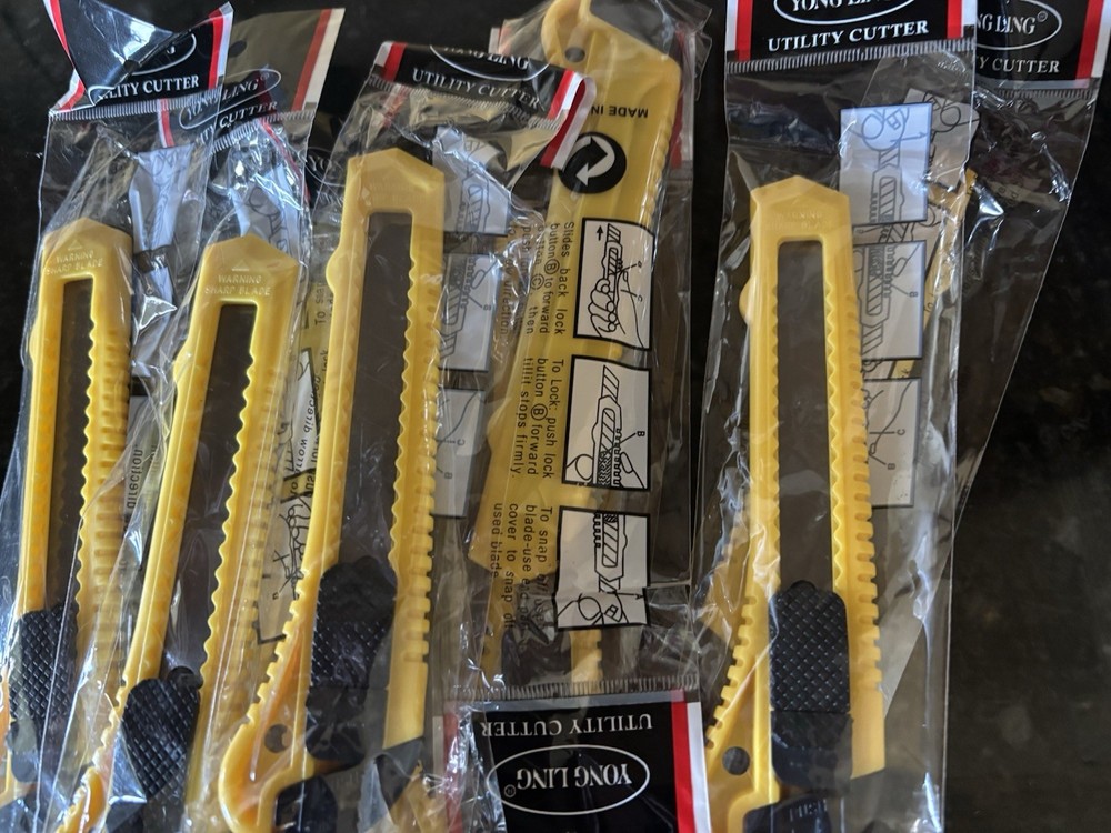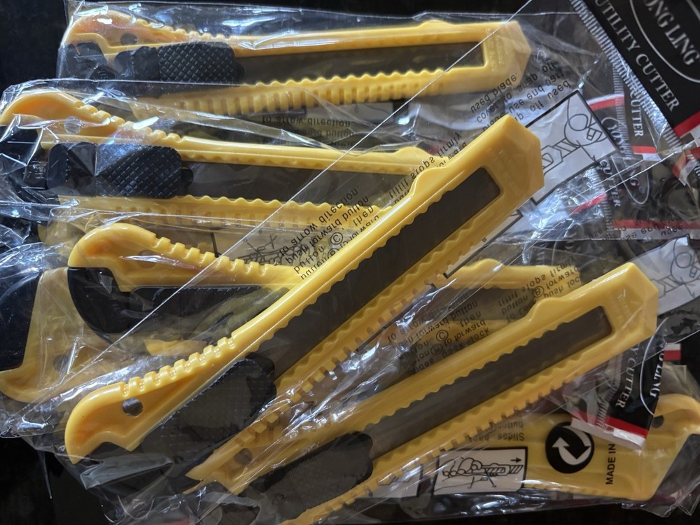 The Utility Cutter with snap blades by Yongling is a versatile tool for various cutting tasks around the home and garden. The steel blades are easy to snap into place and the handles are made of durable plastic for a comfortable grip. The bright yellow color adds visibility. This 20 pack ensures you always have a blade on hand for any utility knife project. Ideal for DIY enthusiasts and professionals alike, this utility knife is a must-have for any workshop or tool collection.
