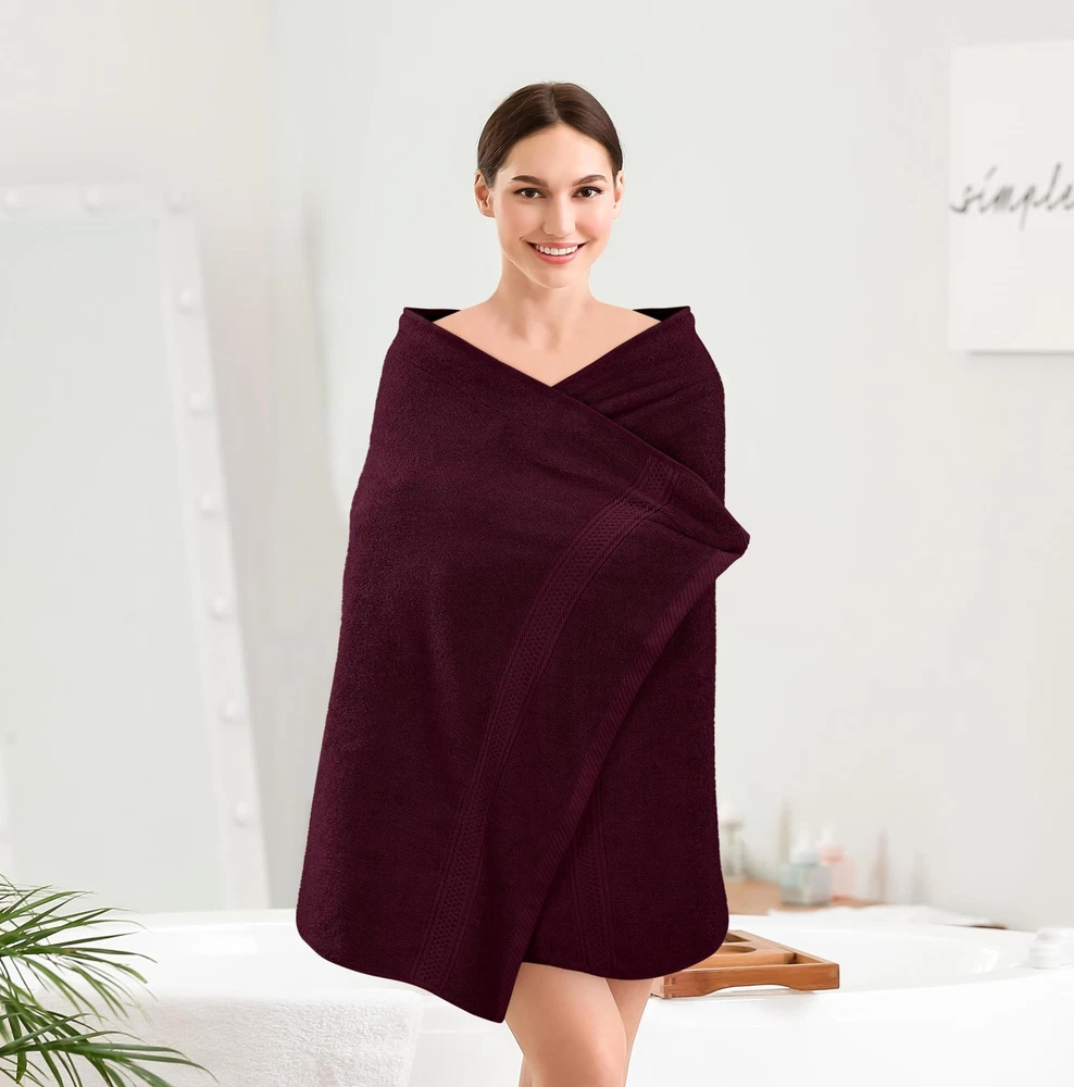 These towels are a game-changer! Super soft, ultra-absorbent, and surprisingly lightweight – they dry you off in seconds and feel plush against your skin. The rich burgundy color adds a nice pop of color to my bathroom, and after multiple washes, they still look and feel brand new. Perfect thickness – not too bulky but still super cozy. At this price for four high-quality towels, it's an absolute steal. Highly recommend for anyone looking for hotel-quality linens at home!