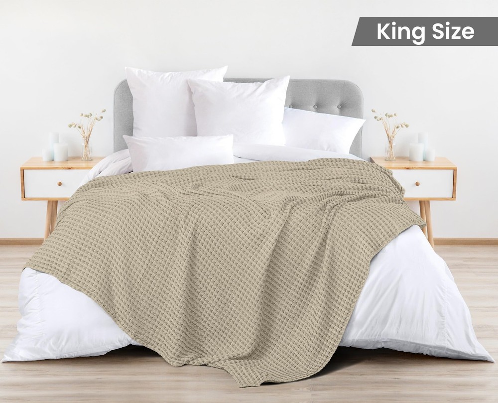 Utopia Bedding Khaki 100% Cotton Waffle Blanket 300 GSM [King - King, Description Features: Waffle Weave – Skillfully constructed and neatly woven with a waffle weave texture, available in Queen, King, Twin Big, Throw and Full size is perfect for your comfort. The waffle weave pattern gives off a plush yet smooth feel. Add this layer of a cozy blanket to your bedding for a soothing retreat while enhancing the décor of the room. Quality Cotton Material – The waffle weave blanket is made of 100% cotton, creating a lavish experience for you and your family. When you drape it over yourself, on the bed or the couch, you will feel that it’s lightweight and allows breathability; providing a peaceful sleep at night. Solid Craftmanship – Featuring ring spun technology, it is expertly designed with self-binding edging that makes these blankets stronger and softer. Hence, the finishing of our waffle weave blankets is flawless and thorough. All-Season Blanket – A bedding essential in day-to-day life, this blanket will keep you warm in winters and cool on a hot summer night. This blanket has a versatile usage apart from bed or couch layering. You can use it outdoors for a picnic, traveling, while resting at the office, or carrying it in your cars. Care Instructions – The waffle weave blankets can be washed easily, as the fabric is cotton. There is no need to use harsh chemicals. They can be tumble dried or hung up to dry. To obtain the best results, it is recommended to wash them separately on first use. Product Details: Handling We will ship all orders within 1 business day of payment. Delivery We Do Not Ship Outside of the Continental US. Return Policy All items qualify for returns within 30 days of receipt. Buyer is responsible for return shipping on any item that is not damaged. Feedback We take our reputation seriously, we buy and sell online, so we understand the value of trust. If you are unsatisfied with your order, please contact us and we will work with you to resolve it to your satisfaction.