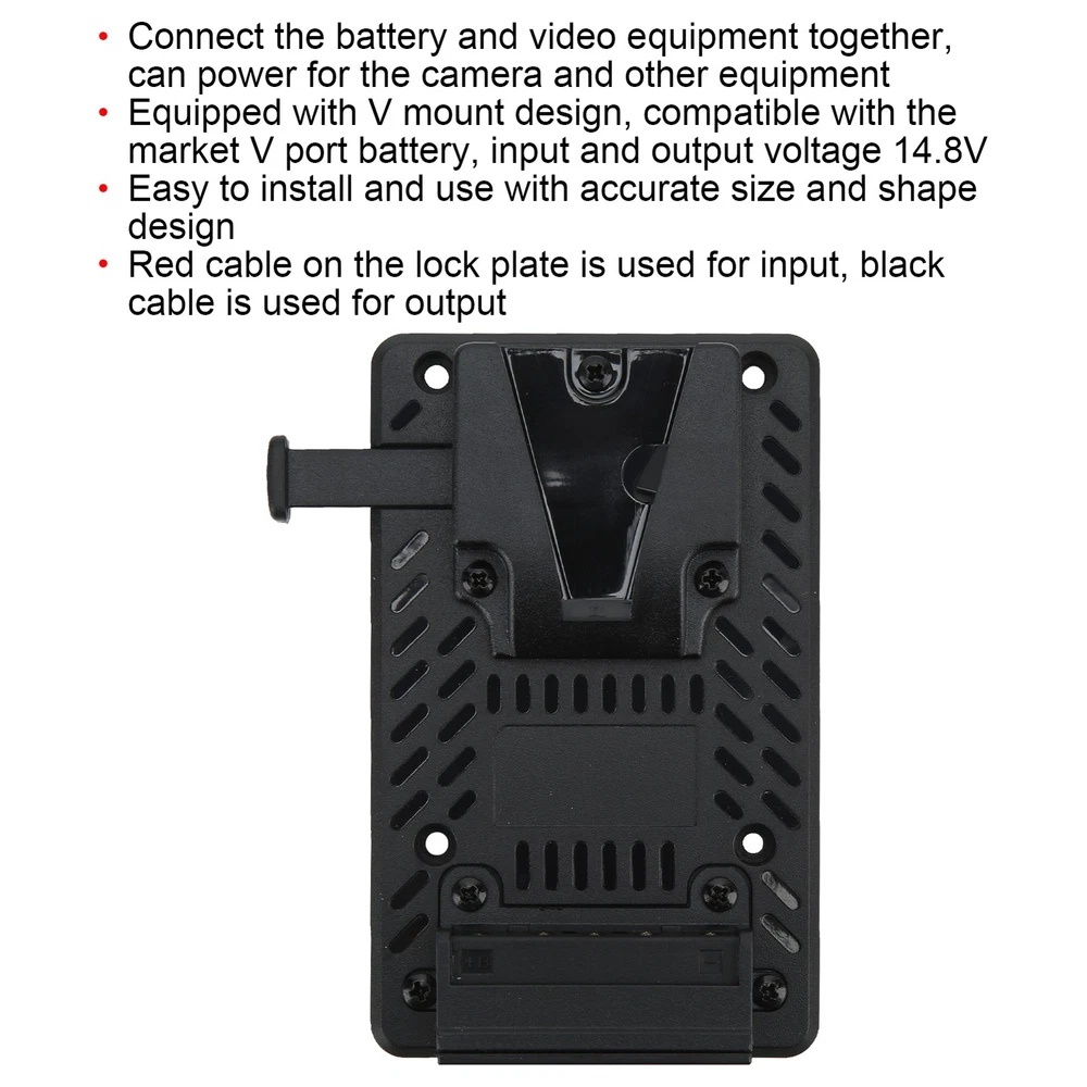 Feature: 1. Using Method: Connect the battery and video equipment together, can power for the camera and other equipment, to extend the working time of camera. 2. Specially Designed: Equipped with V mount design, compatible with the market V port battery, input and output voltage 14.8V. 3. Plastic Material: V mount adopts plastic material, high hardness, good heat resistance, light wieght and durable, having good performance for long service life. 4. Easy to Use: Easy to install and use with accurate size and shape design, the red cable on the lock plate is used for input, black cable is used for output. 5. Universal Using: Has strong universality, compatible with V mount batteries, can effectively prevent the battery from falling off during use. Specification: Item Type: V Mount Battery Plate Material: Plastic Application: for V Mount Battery Weight: Approx.88g/3.1oz Interface: V Mount, DIY Positive And Negative Wiring Head (Red Input, Black Output) Output and Input Voltage: 14.8V Package List: 1 x V Mount Lock Battery Plate 4 x Screws 1. Our listing price includes the value of goods,packaging cost,and export taxes,not including international duties. 2. duties,taxes,and charges are not included in the item price or shipping fee. 3. T he duties are buyers' responsibility .Please check with your country's customs office determine what these additional costs will be prior to your purchase. 4. All disputes arising from the duties will be submitted to ebay for solution. 1. Any questions, pls. contact us via ebay message or email us. We will reply your message within 48 hours. If you do not receive our reply within 48 hours, pls. post a message again because sometimes our message system may block some emails. 2. If you are satisfied with our service, pls. kindly leave us a positive feedback and give us the Detailed Seller Rating with all " 5 " in very area 3. Our aim is to provide Level Customer Service, your recognition will encourage us greatly and serve you better. We strive to keep all our customers satisfy. We will do our up most to exceed your expectations in customer service, communication and dispatching of your orders.
