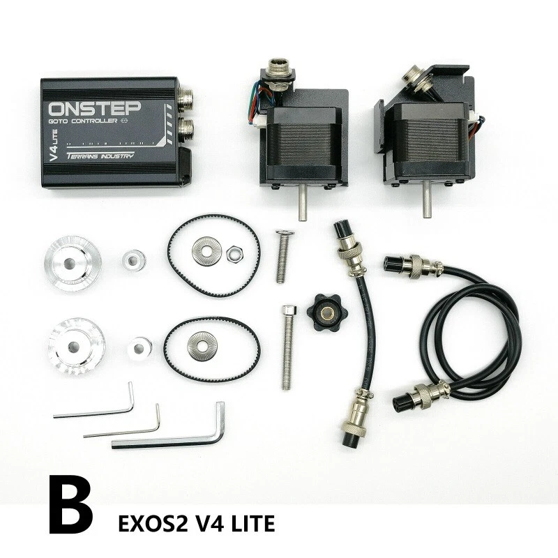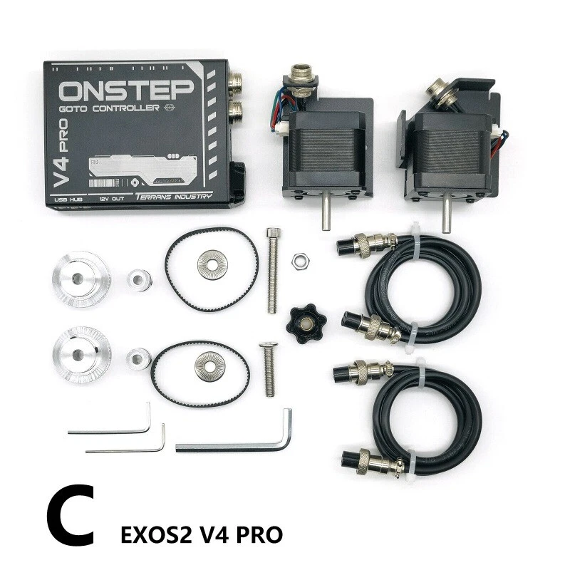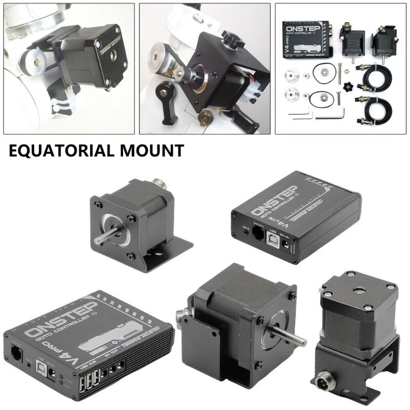 De sciption: New Item V4 E XOS2 Pro Main function: - GOTO automatic star finding - Biaxial tracking - Bluetooth/WiFi/USB connection - RTC real time clock - SLR shutter control - Aviation motor connector - USB HUB concentrator - 12V controllable DC output - Electric focusing extension - Rotator extension V4 EXOS2 Lite Main function: - GOTO automatic star finding - Biaxial tracking - Bluetooth/WiFi/USB connection - RTC real time clock - SLR shutter control - Aviation motor connector - Integrated installation of motor bracket General function: - Biaxial electrical tracking - Biaxial GOTO - 256 subdivision motor drive - Support connection with ST4/SHC handle - USB/Bluetooth/WiFi connection - RTC real time clock - 12 - 24V wide voltage power supply - SLR shutter control Customized extension function: - Electric focusing 1 - Electric focusing 2/rotator - Limit switch - Temperature and humidity sensor High order customized function: - Biaxial AB encoder - PEC Interfaces: - WiFi antenna - Encoder extension interface - Rotator motor interface (need DIY by yourself) - Electrical focusing motor interface (need DIY by yourself) - Right ascension motor interface - Declination motor interface - Power indicator - Power supply: 12 power adapter or lithium battery - USB interface: to connect computer or ASIAIR box - Intelligent handle interface - 2.5mm general SLR shutter control - Bluetooth antenna Package Included: - 1 x V4 EXOS2 Pro Kit/V4 EXOS2 Lite Kit For option Note: Please allow minor deviation due to manual measurement. Due to the difference between different monitors, the picture may not reflect the actual color of the item. Payment: 1. PayPal is the only payment method we accept. 2.Please confirm your shipping address is correct before you make the payment. Shipping: 1.Your package will be shipped via economy airmail which normally takes 15-30 working days to deliver or SpeedPAK airmail which normally takes 8-12 working days to deliver. 2.We also offer express shipping with tracking service via EMS/DHL, which normally takes 7-13 working days to deliver,but you need to pay for the extra shipping cost. 3.You should expect to pay any taxes, if there is any, charged by the government in your respective country. 4.Notes: the delivery time may vary due to public holidays, natural disasters, and other unexpected impact, etc. Return: 1.We will re-send a new item to you if we make mistake to offer a wrong product. 2.We are not responsible for people or shipping damage. 3.If you are willing return item back to us, please keep it in original package. Feedback: 1.We would like to earn your Positive Feedback . If we have not given you reason enough for positive feedback then please let us know how we can earn your 5-star rating before submitting yourscores. 2.Please Note: We don't accept negative feedback or open cases without communication, we believe that any problems can be resolved through.