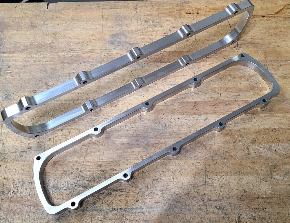 One pair, 3/4" billet valve cover spacers for Oldsmobile v-8s. With extra gasket you'll gain just under 1" which is usually enough to run stud girdles under stock valve covers. Shipping to lower 48 is 19.00.