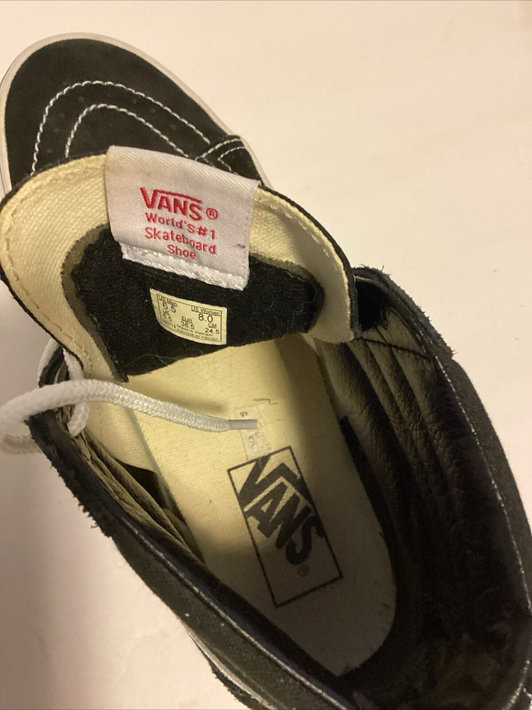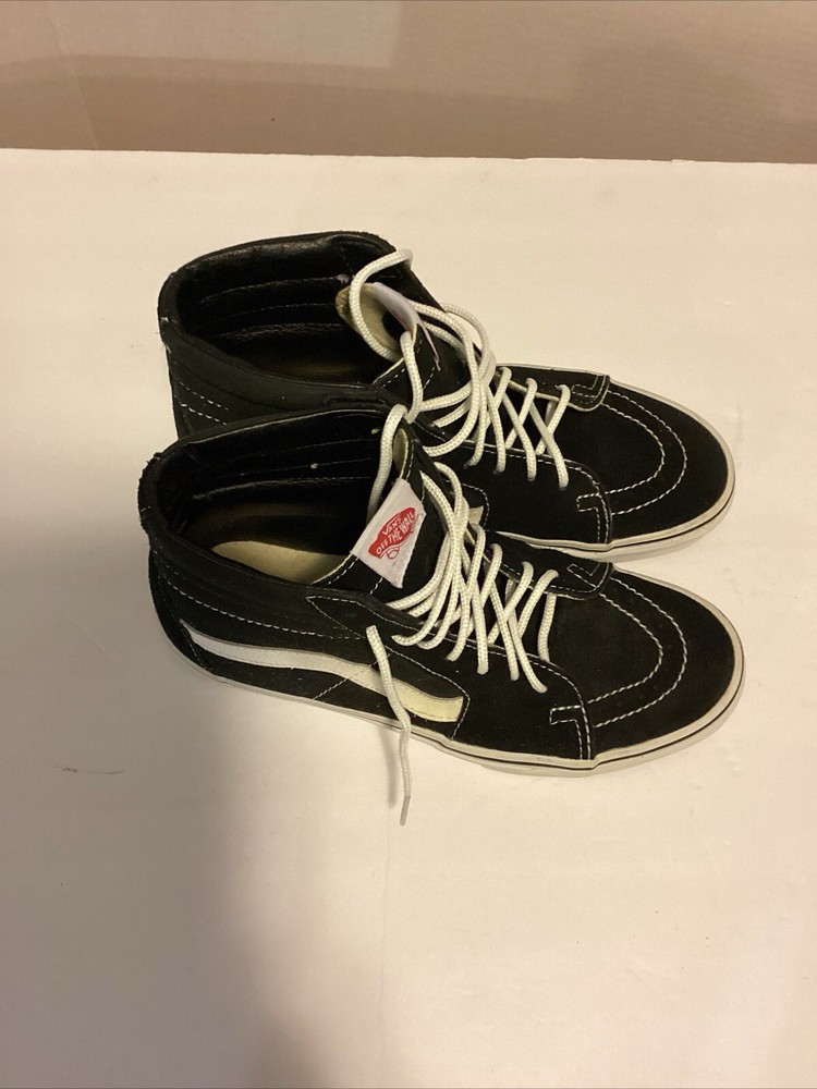 Vans, black and white high tops off the wall number one skateboard shoe size 6.5 preowned very good condition