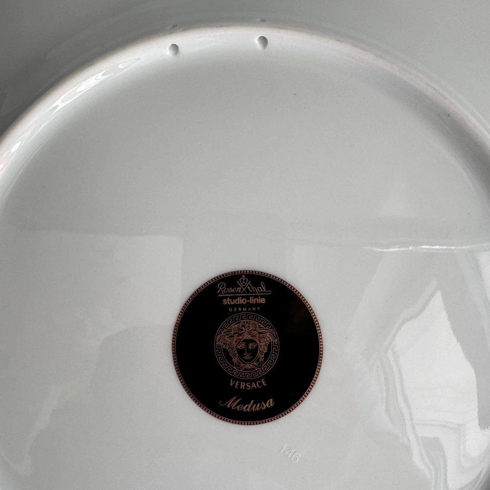 KLAUKTIONEN presents: IIII I Item: Servie Plate ca. 12 inch (30 cm) Producer: Rosenthal VERSACE Serie: Medusa Material: Porcelain Condition: First CHOICE, In Box, used, no Cracks, no damage. Worldwide Shipping