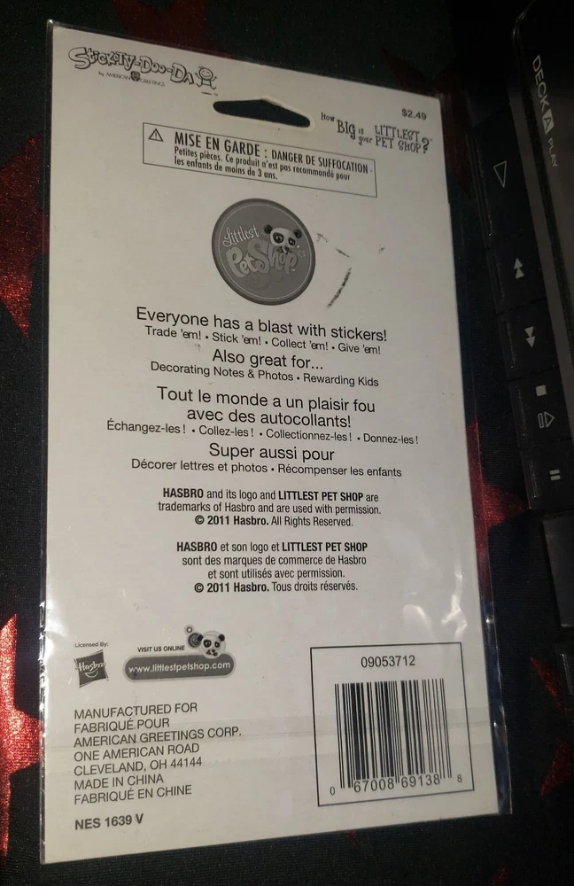 Year Manufactured:2007Material:PaperColor:MulticolorTV Show:littlest pet shopType:StickerCharacter Family:Littlest Pet ShopBrand:Littlest Pet ShopSet Includes:StickerFinish:Glossy