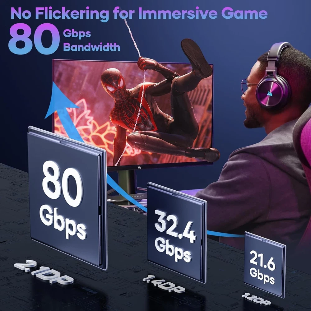 High-Speed DisplayPort 2.1 Cable 6FT - 16K 60Hz, 8K 120Hz, 4K 144Hz, HDR, DSC Support