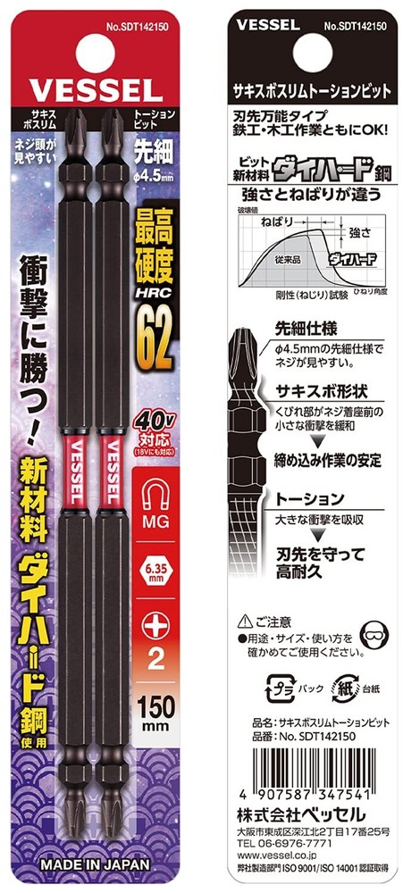 VESSEL 40V Compatible Sakisbo Slim Torsion Bit Double Head +2 x φ4.5 x 150mm Set of 2 SDT142150 Brand: VESSEL Material: Alloy steel Drive system: Cross Quantity: 2 Manufacturer: VESSEL About this product Quantity: 2 Contents: (+)2×150mm Specifications: Double-ended Specifications: With magnet ☆PRODUCTS☆ Please check the Photo ☆PAYMENTS☆ We accept PayPal and all major Debit / Credit Cards. We can only ship your item after your payment clears. We ship within 10 days of payment. ☆CHECKOUT☆ Please check your address before paying because we can ONLY ship to addresses that are entered before placing the order. We cannot change an address after the order has already been placed. ☆SHIPPING☆ Packages:Box and Bubblerup Packages usually leave our warehouse within 5-7 days of payment. Weekend orders will ship on Monday or Tuesday. We provide valid Tracking Numbers for all orders. ~~For Expedited shipping~~ For Expedited, the item will arrive in about 2-6 days after shipping. ~~For economy shipping~~ Economy shipping to the US (with some exceptions) will take approximately 7-12 business days to arrive after shipping. Even if you select economy shipping, it may be changed to Expedited instead of Economy depending on the size of the product or the size of the package. If it is changed to Expedited, there will be no additional charge, so please rest assured. Only for shipments to Australia, items will be shipped by Japan Post's EMS instead of FedEx (arrival schedule may change slightly) ☆International Packages:☆ We ship to all US Territories, Europe and Asia and Middle East and Australia and Canada including Guam All our international packages ship under the Fedex and Japan Post. ☆CUSTOMER SERVICE☆ If you have any questions or issues, we are at your service. You can email us anytime through eBay messages. ☆RETURN INFORMATION☆ We offer a standard FREE 30 days refund or exchange policy. Item must be returned in original condition in order to receive a full refund. ☆Customs duty☆ Import duties, taxes, and charges are not included in the item price or shipping cost. These charges are the buyer's responsibility. Please check with your country's customs office to determine what these additional costs will be prior to bidding or buying. We will reply to your question or invoice within 3 days. We can't not reply gifts or unreasonable requests such as declared amount.