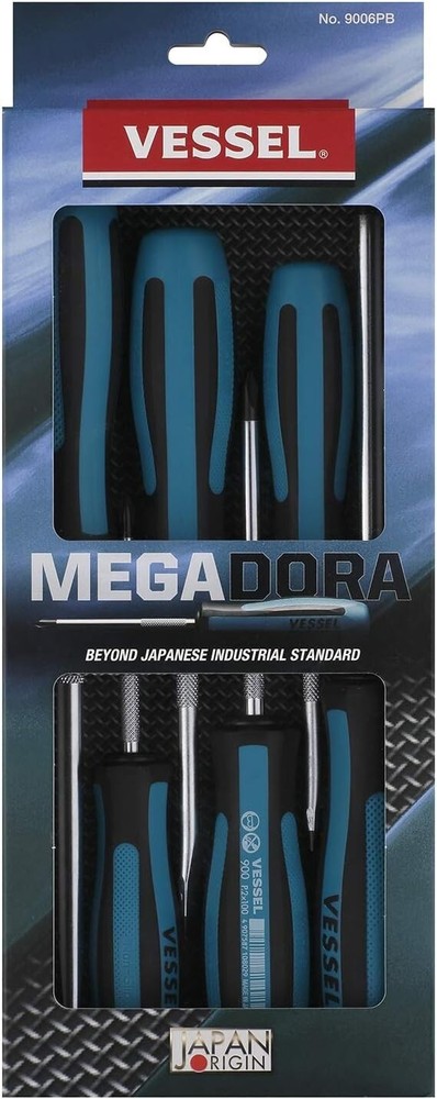 VESSEL MEGADORA Screwdriver Set 6pcs. 9006PB (Paper Box). Condition is New. Shipped with USPS Ground Advantage.