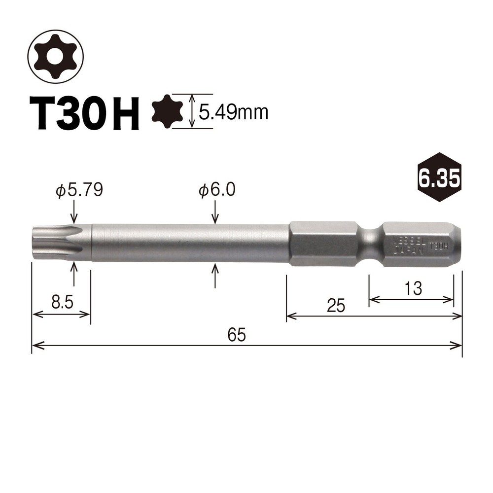 Brand: VESSEL Drive system: Torx Quantity: 1 Manufacturer: VESSEL About this product Blade tip: T30H Total length: 65mm Shank diameter: 6.35mm No magnet Quantity: 10 pieces RoHS 10 substance compliant Country of origin: Japan ☆PRODUCTS☆ Please check the Photo ☆PAYMENTS☆ We accept PayPal and all major Debit / Credit Cards. We can only ship your item after your payment clears. We ship within 10 days of payment. ☆CHECKOUT☆ Please check your address before paying because we can ONLY ship to addresses that are entered before placing the order. We cannot change an address after the order has already been placed. ☆SHIPPING☆ Packages:Box and Bubblerup Packages usually leave our warehouse within 5-7 days of payment. Weekend orders will ship on Monday or Tuesday. We provide valid Tracking Numbers for all orders. ~~For Expedited shipping~~ For Expedited, the item will arrive in about 2-6 days after shipping. ~~For economy shipping~~ Economy shipping to the US (with some exceptions) will take approximately 7-12 business days to arrive after shipping. Even if you select economy shipping, it may be changed to Expedited instead of Economy depending on the size of the product or the size of the package. If it is changed to Expedited, there will be no additional charge, so please rest assured. Only for shipments to Australia, items will be shipped by Japan Post's EMS instead of FedEx (arrival schedule may change slightly) ☆International Packages:☆ We ship to all US Territories, Europe and Asia and Middle East and Australia and Canada including Guam All our international packages ship under the Fedex and Japan Post. ☆CUSTOMER SERVICE☆ If you have any questions or issues, we are at your service. You can email us anytime through eBay messages. ☆RETURN INFORMATION☆ We offer a standard FREE 30 days refund or exchange policy. Item must be returned in original condition in order to receive a full refund. ☆Customs duty☆ Import duties, taxes, and charges are not included in the item price or shipping cost. These charges are the buyer's responsibility. Please check with your country's customs office to determine what these additional costs will be prior to bidding or buying. We will reply to your question or invoice within 3 days. We can't not reply gifts or unreasonable requests such as declared amount.