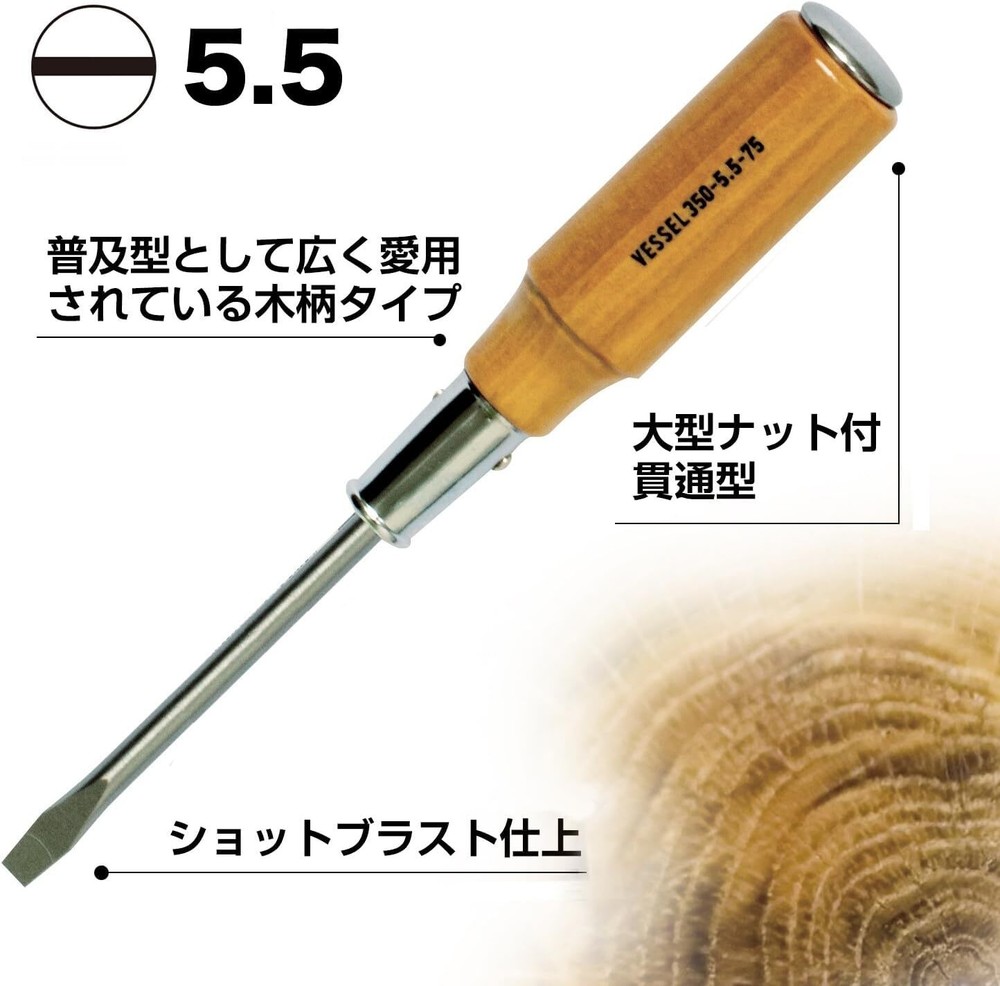 Brand: VESSEL Quantity: 1 Head style: Flat head Material: Shaft: chrome vanadium steel, grip: wood Recommended use: Various screw tightening tasks Features: Through-hole screwdriver, wooden handle Product dimensions (length x width x height): 17.8 cm Product weight: 70 grams Model name: Wooden handle screwdriver Head size: 5.5 Blade tip: -5.5 Blade thickness: 0.8 mm Shaft length: 75 mm Shaft diameter: 5.5 mm Handle diameter: 25 mm Total length: 178 mm Country of origin: Japan No magnet RoHS 10 substance compliant Through-hole type ☆PRODUCTS☆ Please check the Photo ☆PAYMENTS☆ We accept PayPal and all major Debit / Credit Cards. We can only ship your item after your payment clears. We ship within 10 days of payment. ☆CHECKOUT☆ Please check your address before paying because we can ONLY ship to addresses that are entered before placing the order. We cannot change an address after the order has already been placed. ☆SHIPPING☆ Packages:Box and Bubblerup Packages usually leave our warehouse within 5-7 days of payment. Weekend orders will ship on Monday or Tuesday. We provide valid Tracking Numbers for all orders. ~~For Expedited shipping~~ For Expedited, the item will arrive in about 2-6 days after shipping. ~~For economy shipping~~ Economy shipping to the US (with some exceptions) will take approximately 7-12 business days to arrive after shipping. Even if you select economy shipping, it may be changed to Expedited instead of Economy depending on the size of the product or the size of the package. If it is changed to Expedited, there will be no additional charge, so please rest assured. Only for shipments to Australia, items will be shipped by Japan Post's EMS instead of FedEx (arrival schedule may change slightly) ☆International Packages:☆ We ship to all US Territories, Europe and Asia and Middle East and Australia and Canada including Guam All our international packages ship under the Fedex and Japan Post. ☆CUSTOMER SERVICE☆ If you have any questions or issues, we are at your service. You can email us anytime through eBay messages. ☆RETURN INFORMATION☆ We offer a standard FREE 30 days refund or exchange policy. Item must be returned in original condition in order to receive a full refund. ☆Customs duty☆ Import duties, taxes, and charges are not included in the item price or shipping cost. These charges are the buyer's responsibility. Please check with your country's customs office to determine what these additional costs will be prior to bidding or buying. We will reply to your question or invoice within 3 days. We can't not reply gifts or unreasonable requests such as declared amount.