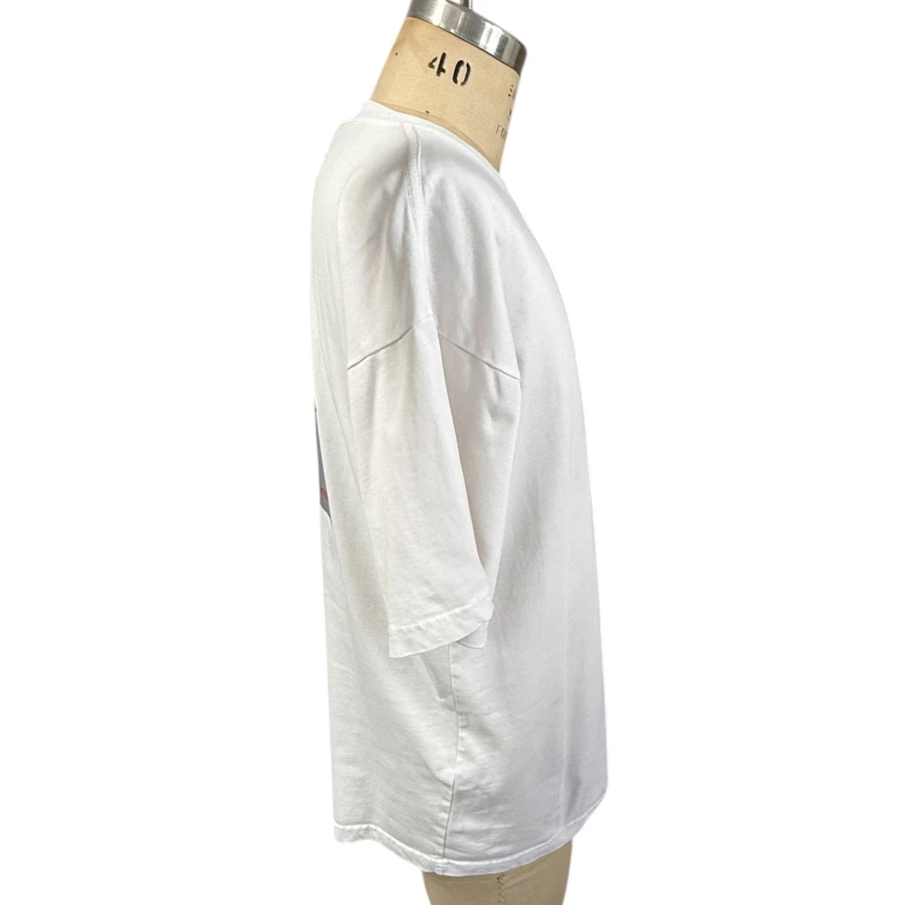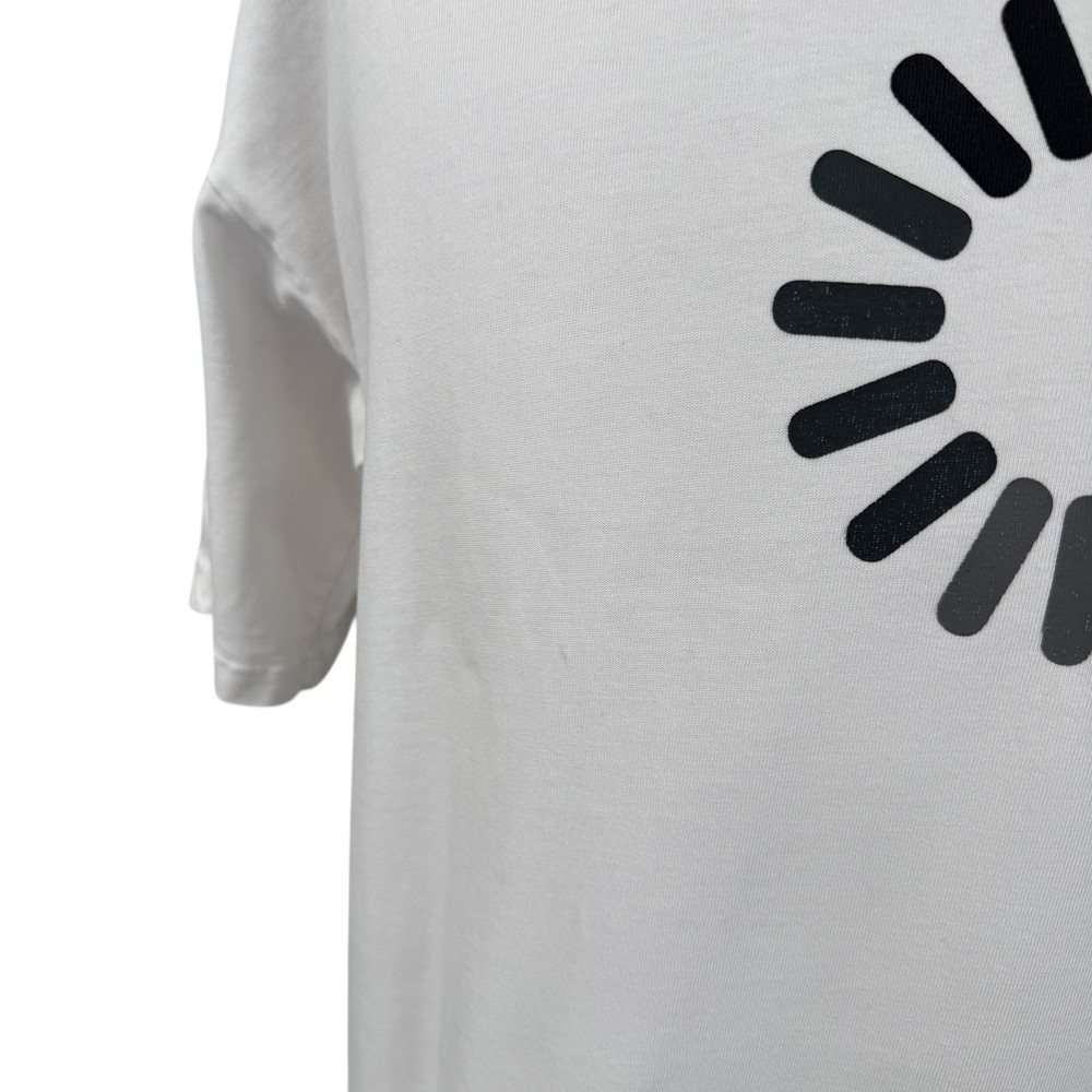 VETEMENTS Loading Error 404 Graphic T Shirt White Mens M Oversized Short Sleeves Condition: Pre-Owned Light Pilling around crew neck Cracking on Back Logo A Few Light Markings Near Bottom Hem See full description for measurements Measurements in inches Taken While Garment Was Laying Flat: • Chest (pit to pit): 24 • Full Length (shoulder to hem): 28.5 • Sleeve Length (shoulder to cuff): 8.5 • Width Across Bottom Hem: 25 *These measurements were personally taken and are approximate Measurements are provided to help determine fit, it possible please compare to something you already own All photos are of the actual item you will receive (stock photos aren't used) *s4 A white VETEMENTS graphic t-shirt featuring a unique loading circle design on the front and a "404 Page Not Found" error message graphic on the back. This unisex tee from the Garderobe Collection Pret-a-Porter is a statement piece for casual outings or tech-themed events. Keywords: VETEMENTS t-shirt, graphic tee, unisex, techwear, internet, computer, streetwear, designer, casual, oversized, fashion, novelty