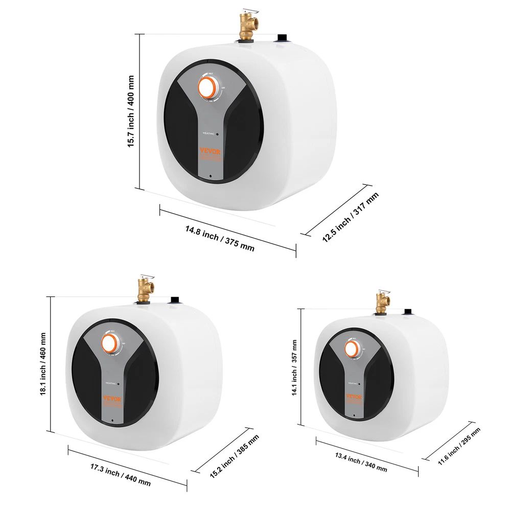 Document Product Description Your Handy Household Water Assistant The tank-style kitchen gem, an instant hot water supplier for your kitchen. Durable, rust-proof, and corrosion-resistant, allowing you to enjoy a safe and convenient water experience anytime. Suitable for various settings such as household kitchens and commercial spaces. Continuous safe hot water supply for 24 hours! Equipped with temperature and pressure safety valves, enamel coating, polyurethane insulation layer, magnesium rod, and 310S stainless steel heater, ensuring an efficient, safe, and consistent water experience. This tank-style kitchen gem comes in three sizes: 2.5 gallons, 4 gallons, and 8 gallons. It can meet the daily water needs of 3 to 10 people, allowing you to choose the size and capacity that suits you for installation. We provide an instruction manual for installation, simply follow the steps outlined in the manual. The cold and hot water connection diagram can serve as a guide to avoid installation errors that may render the unit unusable. Suitable for various settings such as household kitchens, bathrooms, as well as airports, malls, etc. It can meet the hot water demands of different places including homes, restaurants, hotels, commercial kitchens, and more. Here we will provide you with 3 types of Mini Water Heater for your option: 2.5 Gallon, 4 Gallon, 8 Gallon. Features & Details Stainless Steel Water Heater: With a power of 1440W, the 310S stainless steel heater can continuously deliver hot water for 24 hours. It heats up the water to the desired temperature within just 8 to 15 minutes of use, reaching a maximum of 145℉ / 62.8°C. Additionally, the corrosion-resistant inner tank and integrated polyurethane insulation layer ensure long-lasting warmth retention and durability without any leaks. Temperature Pressure Safety Valve: This compact tank comes equipped with a temperature pressure safety valve, significantly enhancing its safety during use. You can use it with peace of mind, as it, along with other safety features, protects you from risks such as scalding, leaks, or other injuries, ensuring a reliable water usage experience throughout the day. 2.5/4/8 Gallon Water Capacity: With a 2.5/4/8 -gallon water capacity, it provides ample hot water supply regardless of the season, meeting various household needs such as cooking, dishwashing, and laundry. By tapping the water pipe and placing the hot water source under the sink, you can eliminate the wait time for hot water to reach the faucet, thus saving water. 2 Installation Methods: Compact and easy to install: Its small and lightweight design saves space. We offer two installation methods, vertical and horizontal, and it can simultaneously supply two sinks. Simply follow the installation instructions step by step, and you can install the water heater on a shelf, wall, or floor (with the inlet and outlet facing upwards). User-friendly Features: This tank kitchen treasure not only features LED lights for easy water temperature monitoring but also has a temperature pressure safety valve on top for your peace of mind. Moreover, its easy-to-use knob temperature adjustment design allows you to control the warmth conveniently. Additionally, both hot and cold water supplies provide a comfortable user experience. SHIPPING ABOUT US PAYMENT RETURNS CONTACT WARRANTY Welcome to our eBay store. As a leading and emerging company in manufacturer and exporting business, we are specialized in Business and Industrial Products, Sporting Goods, Pet Products, Home and Garden products for more than 10 years. We believe that it is our vision and mission to provide innovative products with best service and competitive price to satisfy you. Our goal is to make sure that you can find exactly what you are looking for and make it easy for you to place your orders. We accept PayPal payment,PayPal Credit,Credit card or debit card and so on. Payment should be completed within 4 (Four) days of auction closing. Or unpaid dispute will be filed for closing auction. We will leave a positive feedback immediately after payment is received. We appreciate a positive feedback as much as you do. If for some reason there is any issue with the purchase, please contact us prior to leaving feedback, we will be glad to work together and provide a satisfying solution. Please be aware that PO Box cannot receive items, please DO NOT fill in the PO Box address. DELIVERY DAYS: 3-7 BUSINESS DAYS 3 BUSINESS DAYS SHIPPING OUT SHIP FROM CA & TX & NJ & GA & NC &OR WAREHOUSE California Warehouse: City of Industry, CA Texas Warehouse : Houston, TX New Jersey Warehouse : Perth Amboy, NJ New York State Warehouse: Perth Amboy, NJ Georgia Warehouse: Austell,GA North Carolina Warehouse: Grove NC Oregon Warehouse: AIRPORT WAY Portland,OR All of our items are backed with a 30-day return policy. We ensure all our items are new and in excellent condition prior to shipping. In case you receive the item that is not to the standards above, please contact us via e-Bay messages. All returns must be in new original condition as received and should be shipped with delivery confirmation Please note that all returns must be pre-approved by us. Unauthorized returns will not be accepted. If you need to return, please check twice to confirm the item not work and contact our customer service representative, let us know the detailed problem and send us some pictures for confirmation. We ONLY accept returns with original package. Please make sure that item has NO man-made sabotage. Used items will not be accepted for return. Email Customer Support: 9:00am-2:00am PST Sunday-Friday All emails will be responded to within 12-24 hours This item comes with 12 months Warranty from the date of customers purchased it. Special circumstances will be listed clearly in the listing. If your item has been damaged in transit or become faulty in warranty period, please email us with pictures or video to show the problem. Please do check ever