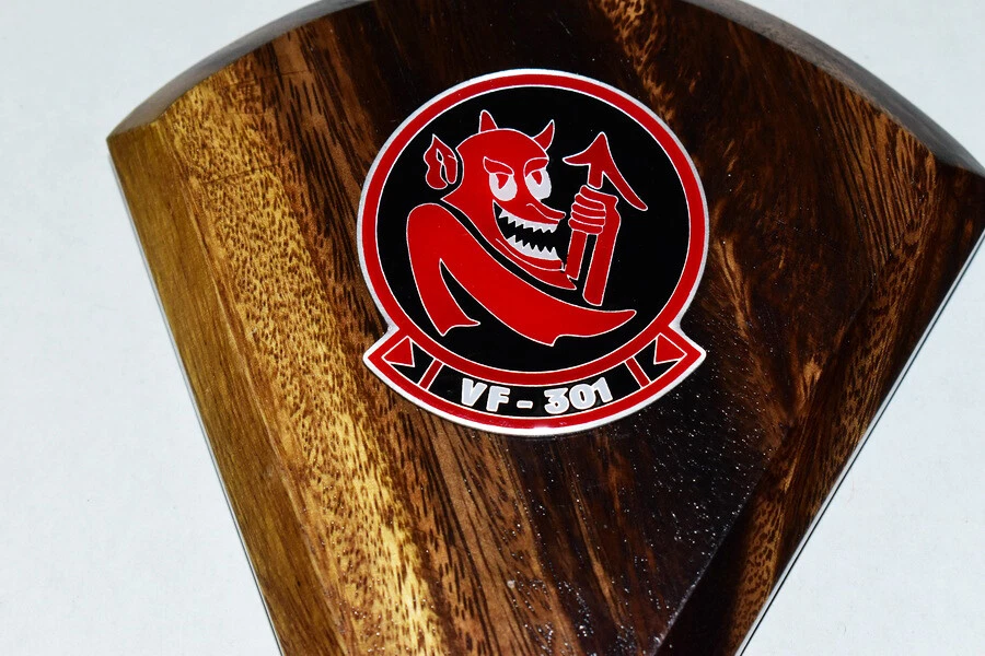 VF-301 Devil's Disciples F-14a Model A beautifully carved 18-inch solid wood F-14 Tomcat with moveable swept wings of the VF-301 Devil's Disciples! Master craftsmen carefully carve each model and then meticulously paint to give a perfect piece of art! Length - 18 inches Made from Mahogany US Veteran Owned Business The product is not intended to be used by children 12 years and younger. Model has wings that move. It is made of solid wood. VF-301 was activated on 1 October 1970 and assigned to Carrier Air Wing Reserve 30 (CVWR-30) (tail code "ND") at Naval Air Station Miramar, California (USA). The squadron first flew the F-8L Crusader and later transitioned to the F-4B Phantom in 1974. Their time with the B-models was short and VF-301 soon received the F-4N in February 1975. In 1980, VF-301 received the most advanced F-4 variant in the U.S. Navy, the F-4S. In October 1984 the unit transitioned to the F-14A Tomcat. The squadron made its first deployment with the F-14A on 21 April 1985, with five aircraft visiting MCAS Yuma, Arizona for air-to-air training against U.S. Marine Corps F-21A Kfir fighters of Marine Fighter Training Squadron 401 (VMFT-401). At this time, the squadron was still transitioning to the F-14 and it was not until 4 August the same year the entire squadron was able to deploy to NAS Fallon, Nevada for air wing training. The Devil's Disciples first carrier landings were on board the USS Ranger. Further carrier training was limited but did include time on board the USS Enterprise between 10 and 22 August 1988. Later in its life the squadron became the first Naval Air Reserve squadron to drop air-to-ground ordnance, specifically Mk 84 bombs and Mk 20 cluster munitions. After 24 years of service VF-301 was disestablished on 11 September 1994, the same time as sister squadron VF-302, due to post-Cold War budget cuts where the Navy opted to sacrifice Reserve F-14 squadrons to keep Regular Navy F-14 squadrons operating. Deactivation of the rest of CVWR-30 was soon to follow. During these 24 years VF-301 had acquired an outstanding safety record, flying 71,322.4 hours without a Class A mishap, setting a new record for Navy tactical jet squadrons.