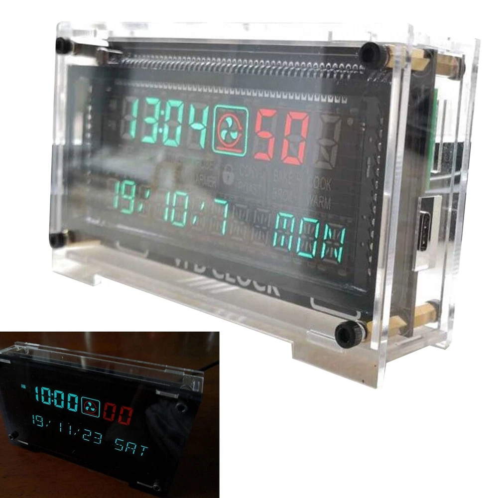 Description If you have any questions or concerns, please do not hesitate to message us. Features: - Super cost-effective VFD clock - Clock chip with temperature compensation - Memory setting - Brightness automatic / manual adjustment function - One-key switch 12/24 hour system - 5V power supply, 1W multi-power consumption, dual power interface: MIRCO USB + TYPE C - Size: 126 x 75 x 30 mm - Two-color VFD Package Included: - 1 x VFD Clock ------------------------- Shipping Policy FREE SAME BUSINESS DAY MONDAY- FRIDAY. No shipping on Weekends or US Public Holidays. No responsibility for any custom duty Shipping information will be updated when available. -------------------------- Payment policy Immediate payment is required. Shipping will be arranged within 1-5 business days once payment is cleared. To uphold a shipping speed, your order will be processed almost immediately. If you change your mind after your payment is confirmed, we will do our best to cancel the order, however, we CANNOT guarantee the cancellation. ----------------------- R eturn Policy We stand behind our items and offer 30 days warranty. All items are in new and working condition unless specified otherwise elsewhere in the description. All Returns - defective or otherwise - MUST BE PREAUTHORIZED to guarantee refund or exchange. Please contact us to get an authorization and return address. Replacement or Refund will be made upon receipt of the returned item. Please include tracking number so we can process ASAP. If you do not wish to wait for a replacement, please repurchase the item. ---------------------- About Feedback We strive to provide the best products and services. Your positive feedback 5 stars DSR help us do better. If anything about your transaction did not meet expectations, please CONTACT US and give us the opportunity to make things right. We are always here to help.