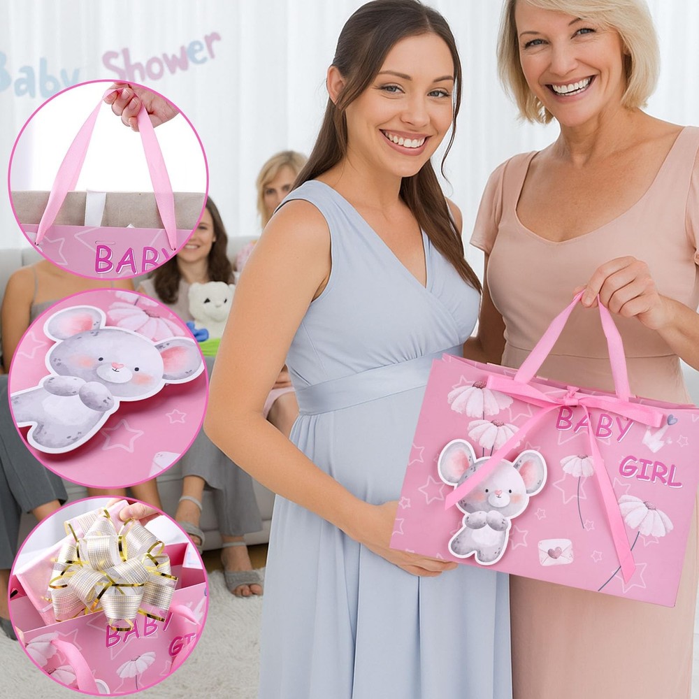 VGOODALL Baby Girl Gift Bag, 13" Bags with Tissue Paper Ribbon Pink Super Value Pack: This set of gift bags contains 1 large bag, 4 tissue paper, 1 greeting card, great for all kinds of baby shower needs. Measuring 13 x 8.7 x 5 inches, each bag is thoughtfully sized for your gifts. Perfect Design: The pink tote paper bag comes with ribbon handles and features a beautiful font that says "Baby Girl" along with three-dimensional animal designs on a pink background. Complete Set with Bonus Additions: The product includes a same-color greeting card (8x6 inches) and four 14gsm wrapping papers (20x14inches). This set provides a variety of options and a rich user experience for your gifting needs. Premium Quality: Crafted from high-quality paper material, our gift bag is safe, odorless, and features a reinforced bottom for sturdiness and durability. Easy to fold for storage and can be reused multiple times. Versatile Usage: Ideal for celebrating various occasions, including 100 days, first birthday parties, baby showers, new parents, newborns, gender reveal parties, and more. The versatile design suits a range of festivities. Baby Gift Bag Shipping We offer FREE shipping on all orders! We ship within Three business days of payment, usually sooner. We use a selection of shipping services such as UPS, FedEx, USPS etc. We only ship to the lower 48 states, no APO/FPO addresses or PO Boxes allowed. Local pickups and combined shipping options are not provided at this time. Return You can return a product for up to 30 days from the date you purchased it. Any product you return must be in the same condition you received it and in the original packaging. Please keep the receipt. Payment We accept payment by any of the following methods: PayPal Please pay as soon as possible after winning an auction, as that will allow us to post your item to you sooner! Feedback Customer satisfaction is very important to us. If you have any problem with your order, please contact us and we will do our best to make you satisfied. Contact Us If you have any queries, please contact us via ebay. We usually respond within 24 hours on weekdays. Please visit our eBay store to check out other items for sale! Thank you for shopping at our store.