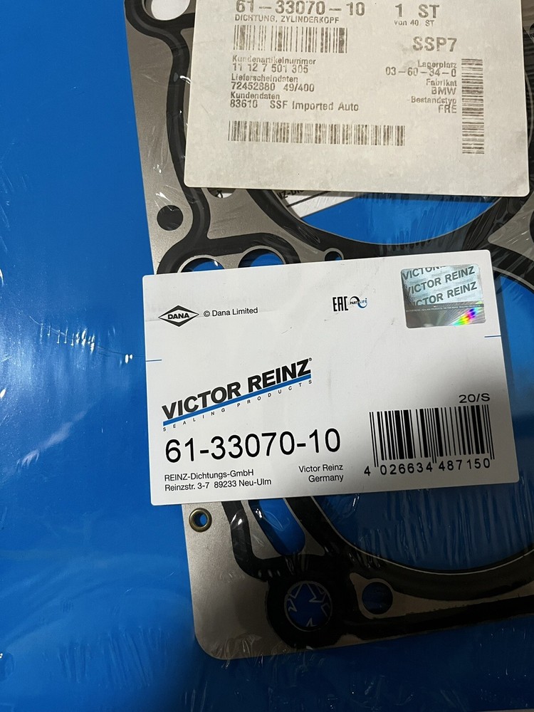 Aftermarket/Genuine/OEM - new parts in original packaging * Ships within 1 business day from warehouses throughout the USA Some vehicle models may have optional equipment that is not compatible with this part. Check in the compatability table below to confirm your vehicle's fitment. PN: 11127501304 Brand/MPN: VICTOR REINZ / 613307000 Description: (QTY 1) Head Gasket (0.70 mm) CLICK ON VEHICLE MODEL TO SEE DETAILS. Please check for your vehicle's compatibility below. Compatibility info is only for North American models. Not all optional equipment or production dates may be compatible, check the application notes on the right of the table. Please contact us if you are unsure about your vehicle's compatibility. BMW 323Ci Year Trim Engine Body Style Required QTY 2000 Base 2.5L L6 Convertible 1 2000 Base 2.5L L6 Coupe 1 323i Year Trim Engine Body Style Required QTY 1999 Base 2.5L L6 Sedan 1 2000 Base 2.5L L6 Sedan 1 2000 Base 2.5L L6 Wagon 1 325Ci Year Trim Engine Body Style Required QTY 2001 Base 2.5L L6 Convertible 1 2001 Base 2.5L L6 Coupe 1 2002 Base 2.5L L6 Convertible 1 2002 Base 2.5L L6 Coupe 1 2003 Base 2.5L L6 Convertible 1 2003 Base 2.5L L6 Coupe 1 2004 Base 2.5L L6 Convertible 1 2004 Base 2.5L L6 Coupe 1 2005 Base 2.5L L6 Convertible 1 2005 Base 2.5L L6 Coupe 1 2006 Base 2.5L L6 Convertible 1 2006 Base 2.5L L6 Coupe 1 325i Year Trim Engine Body Style Required QTY 2001 Base 2.5L L6 Sedan 1 2001 Base 2.5L L6 Wagon 1 2002 Base 2.5L L6 Sedan 1 2002 Base 2.5L L6 Wagon 1 2003 Base 2.5L L6 Sedan 1 2003 Base 2.5L L6 Wagon 1 2004 Base 2.5L L6 Sedan 1 2004 Base 2.5L L6 Wagon 1 2005 Base 2.5L L6 Sedan 1 2005 Base 2.5L L6 Wagon 1 325xi Year Trim Engine Body Style Required QTY 2001 Base 2.5L L6 Sedan 1 2001 Base 2.5L L6 Wagon 1 2002 Base 2.5L L6 Sedan 1 2002 Base 2.5L L6 Wagon 1 2003 Base 2.5L L6 Sedan 1 2003 Base 2.5L L6 Wagon 1 2004 Base 2.5L L6 Sedan 1 2004 Base 2.5L L6 Wagon 1 2005 Base 2.5L L6 Sedan 1 2005 Base 2.5L L6 Wagon 1 328Ci Year Trim Engine Body Style Required QTY 2000 Base 2.8L L6 Coupe 1 328i Year Trim Engine Body Style Required QTY 1999 Base 2.8L L6 Sedan 1 2000 Base 2.8L L6 Sedan 1 330Ci Year Trim Engine Body Style Required QTY 2001 Base 3.0L L6 Convertible 1 2001 Base 3.0L L6 Coupe 1 2002 Base 3.0L L6 Convertible 1 2002 Base 3.0L L6 Coupe 1 2003 Base 3.0L L6 Convertible 1 2003 Base 3.0L L6 Coupe 1 2004 Base 3.0L L6 Convertible 1 2004 Base 3.0L L6 Coupe 1 2005 Base 3.0L L6 Convertible 1 2005 Base 3.0L L6 Coupe 1 2006 Base 3.0L L6 Convertible 1 2006 Base 3.0L L6 Coupe 1 330i Year Trim Engine Body Style Required QTY 2001 Base 3.0L L6 Sedan 1 2002 Base 3.0L L6 Sedan 1 2003 Base 3.0L L6 Sedan 1 2004 Base 3.0L L6 Sedan 1 2005 Base 3.0L L6 Sedan 1 330xi Year Trim Engine Body Style Required QTY 2001 Base 3.0L L6 Sedan 1 2002 Base 3.0L L6 Sedan 1 2003 Base 3.0L L6 Sedan 1 2004 Base 3.0L L6 Sedan 1 2005 Base 3.0L L6 Sedan 1 525i Year Trim Engine Body Style Required QTY 2001 Base 2.5L L6 Sedan 1 2001 Base 2.5L L6 Wagon 1 2002 Base 2.5L L6 Sedan 1 2002 Base 2.5L L6 Wagon 1 2003 Base 2.5L L6 Sedan 1 2003 Base 2.5L L6 Wagon 1 2004 Base 2.5L L6 Sedan 1 2005 Base 2.5L L6 Sedan 1 528i Year Trim Engine Body Style Required QTY Application Notes 1998 Base 2.8L L6 Sedan 1 from 09/98 1999 Base 2.8L L6 Sedan 1 from 09/98 1999 Base 2.8L L6 Wagon 1 from 09/98 2000 Base 2.8L L6 Sedan 1 2000 Base 2.8L L6 Wagon 1 530i Year Trim Engine Body Style Required QTY 2001 Base 3.0L L6 Sedan 1 2002 Base 3.0L L6 Sedan 1 2003 Base 3.0L L6 Sedan 1 2004 Base 3.0L L6 Sedan 1 2005 Base 3.0L L6 Sedan 1 X3 Year Trim Engine Body Style Required QTY 2004 2.5i 2.5L L6 Sport Utility 1 2004 3.0i 3.0L L6 Sport Utility 1 2005 2.5i 2.5L L6 Sport Utility 1 2005 3.0i 3.0L L6 Sport Utility 1 2006 3.0i 3.0L L6 Sport Utility 1 X5 Year Trim Engine Body Style Required QTY 2001 3.0i 3.0L L6 Sport Utility 1 2002 3.0i 3.0L L6 Sport Utility 1 2003 3.0i 3.0L L6 Sport Utility 1 2004 3.0i 3.0L L6 Sport Utility 1 2005 3.0i 3.0L L6 Sport Utility 1 2006 3.0i 3.0L L6 Sport Utility 1 Z3 Year Trim Engine Body Style Required QTY Application Notes 1998 Roadster 2.8L L6 Convertible 1 from 09/98 1999 Coupe 2.8L L6 Coupe 1 1999 Roadster 2.5L L6 Convertible 1 1999 Roadster 2.8L L6 Convertible 1 from 09/98 2000 Coupe 2.8L L6 Coupe 1 2000 Roadster 2.5L L6 Convertible 1 2000 Roadster 2.8L L6 Convertible 1 2001 Coupe 3.0L L6 Coupe 1 2001 Roadster 2.5L L6 Convertible 1 2001 Roadster 3.0L L6 Convertible 1 2002 Coupe 3.0L L6 Coupe 1 2002 Roadster 2.5L L6 Convertible 1 2002 Roadster 3.0L L6 Convertible 1 Z4 Year Trim Engine Body Style Required QTY 2003 2.5i 2.5L L6 Convertible 1 2003 3.0i 3.0L L6 Convertible 1 2004 2.5i 2.5L L6 Convertible 1 2004 3.0i 3.0L L6 Convertible 1 2005 2.5i 2.5L L6 Convertible 1 2005 3.0i 3.0L L6 Convertible 1 Please read the following before making a purchase. Thanks! * Compatibility suggestions are provided to the best of our ability with the data we have at hand. The customer is ultimately responsible for sourcing and installing the correct part for their vehicle. * We are available for contact through eBay messages Mon-Fri, 6:30am - 3:30pm PST * Orders are not shipped on weekends or holidays * Some images may indicate a country of origin. This can change or there can be multiple manufacturing locations. We can not guarantee products country or origin. * OEM part suppliers sometimes remove vehicle manufacturer logos. This can be seen as grind marks, removal of stickers, or blank areas in the casting where the vehicle manufacturer logo or part number may have been. * Packaging may vary according to the product ordered. Some products will be removed from manufacturer provided packaging in order to be sold individually. All products are new and unused. * Any hardware included with this item may have a different color than whats shown in the item images * We do NOT offer local pickup - Item may be located in a multitude of warehouses across the US Shipping Policy: Items typically ship within 1 business days with FedEx ground. Items are lo
