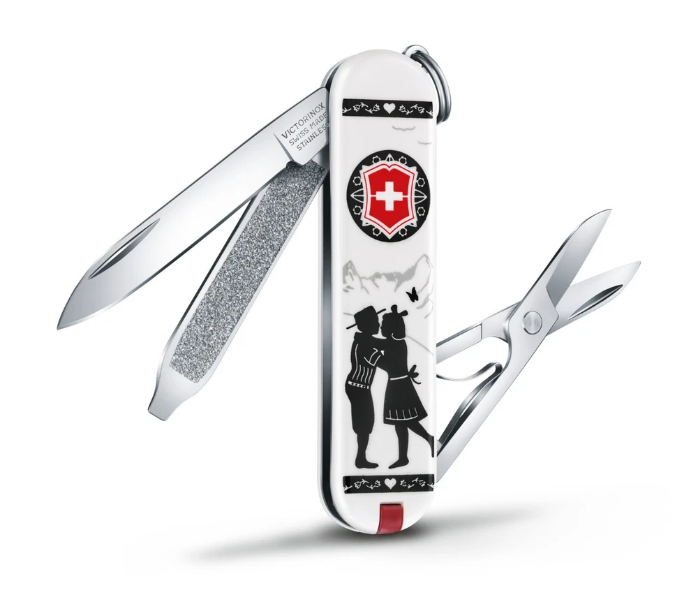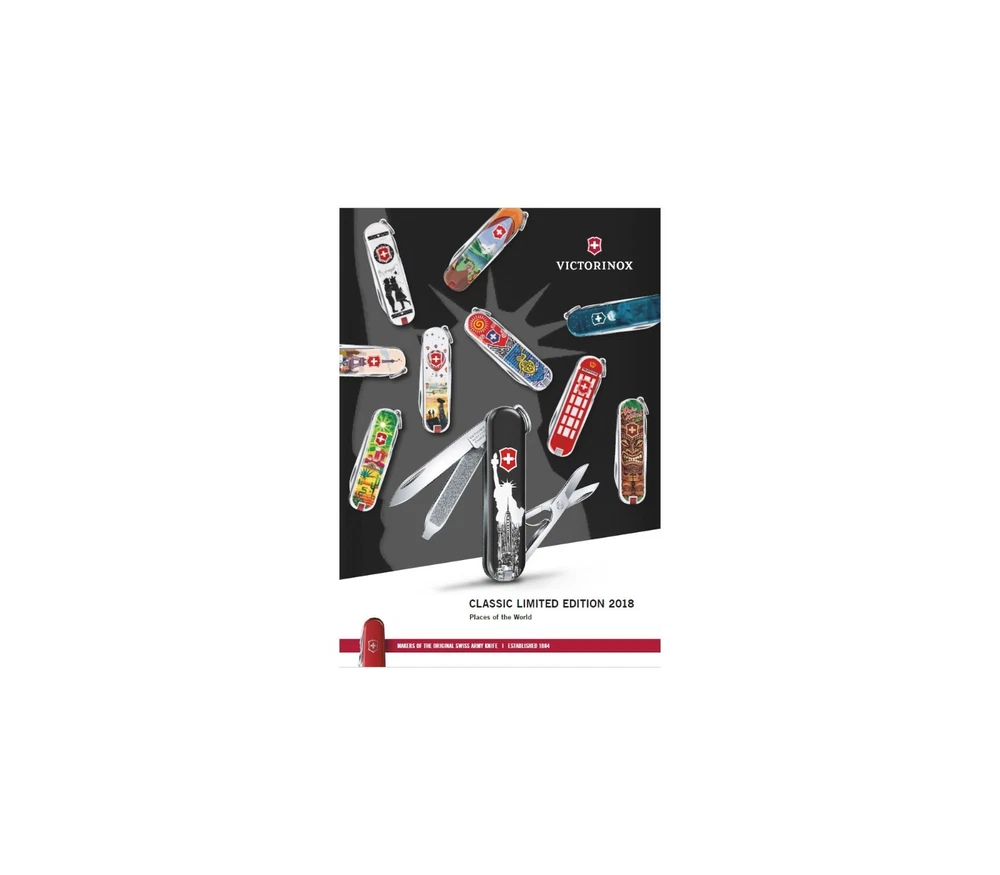 Brought to you by Brought to you by Knife Shop ORIGINAL BRAND NEW FROM VICTORINOX SWISS ARMY 100% AUTHENTICITY GUARANTEE Classic Limited Edition 2018 Alps Love Item Number : 0.6223.L1801 NEW IN FACTORY BOX Details: Classic Limited Edition 2018 Small Pocket Knife with Places of the World Meet the winning designs from our Classic Limited Edition Design Contest, now in its seventh year. The brief for 2018 was travel inspired and entitled "Places of the World." From the 878 creative ideas submitted from over 62 countries, our end consumers took a vote and selected the top ten designs. These make up the final collection. All take inspiration from settings as diverse as Hawaii, Paris to London and New York. Specifications: Scale material ABS / Cellidor Size 2 in 7 functions Height 0.4 in Length 2.3 in Weight 0.7 oz Tools: 1. Blade 2. Scissors 3. Nail File 4. Screwdriver 2.5 mm 5. Key Ring 6. Toothpick 7. Tweezers